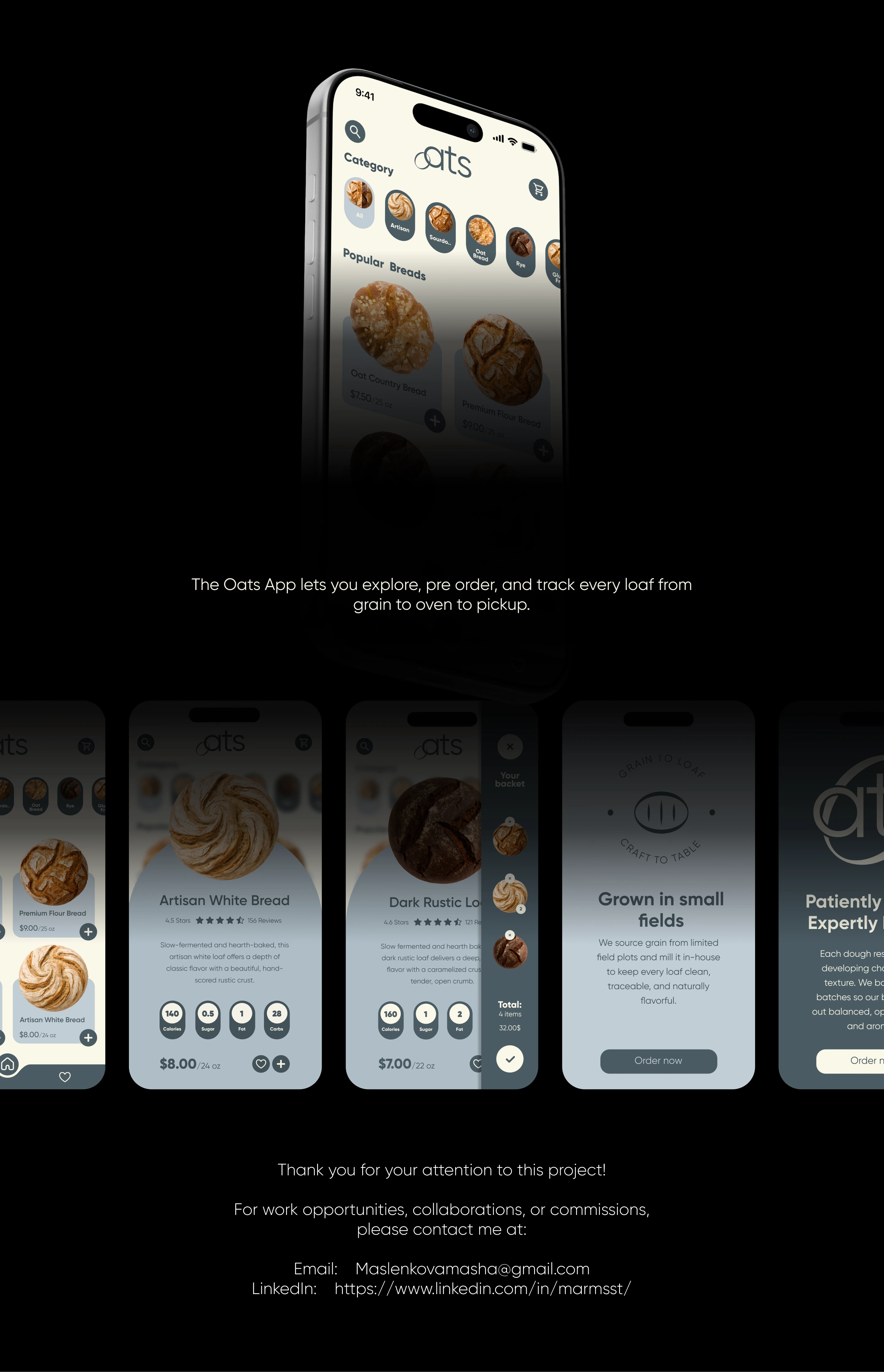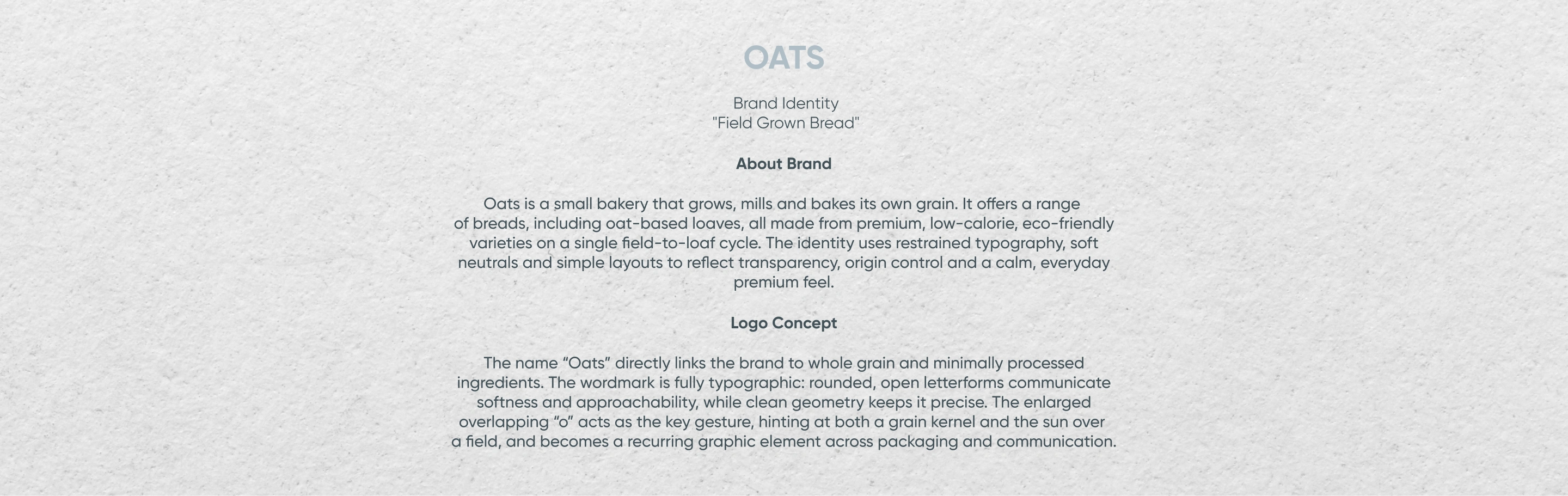 Oats is a visual identity and branding project for a small field grown bakery that controls the full journey from grain to loaf.