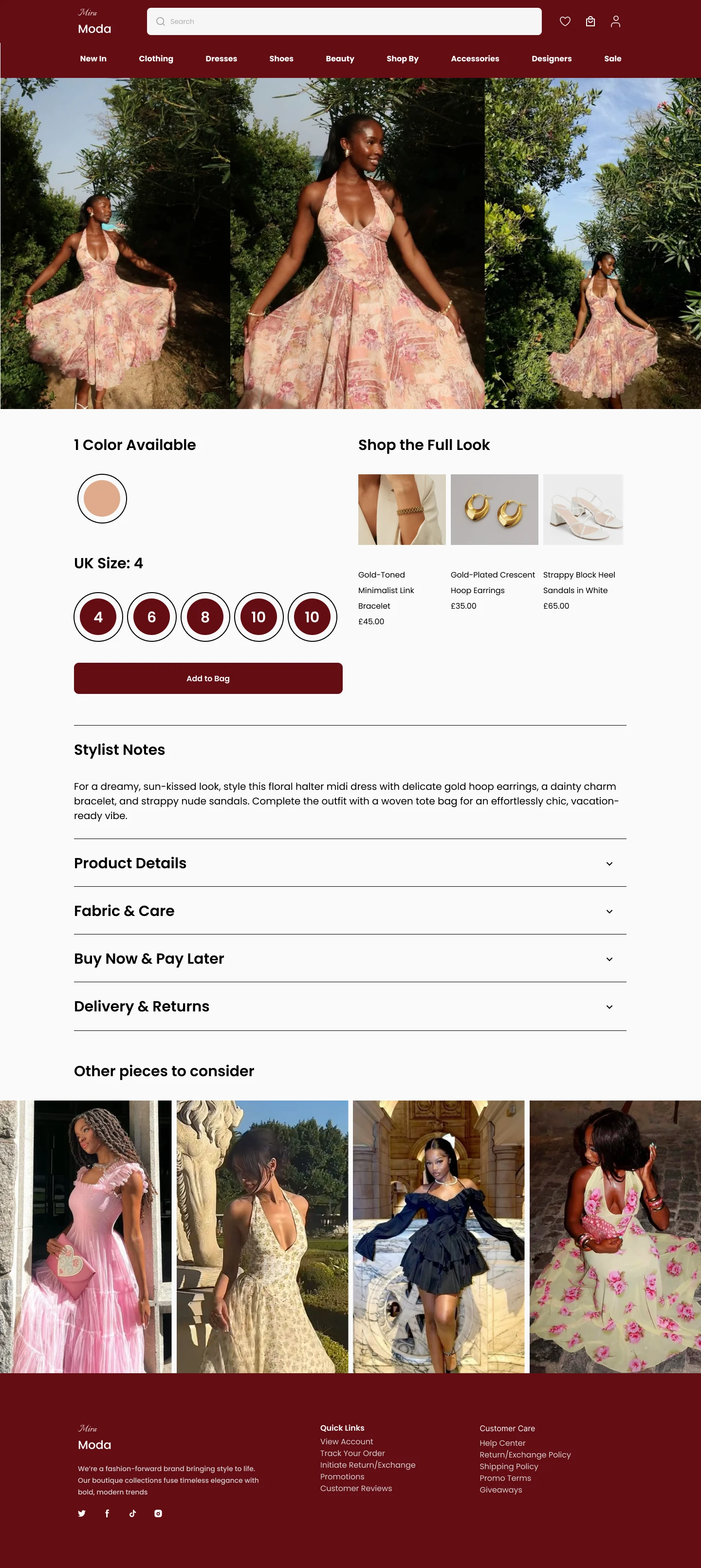 I kicked off the project by building visual moodboards to capture the brand’s identity and set the tone for the digital experience. Once aligned on direction, I designed the key pages home, product listings, product detail, and checkout flow to establish the style. From there, I expanded into the full website design, focusing on clean layouts, strong imagery, and smooth interactions.