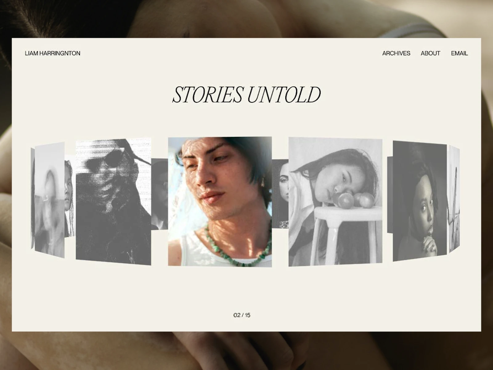 An interactive design concept showcasing a photography and art portfolio experience.