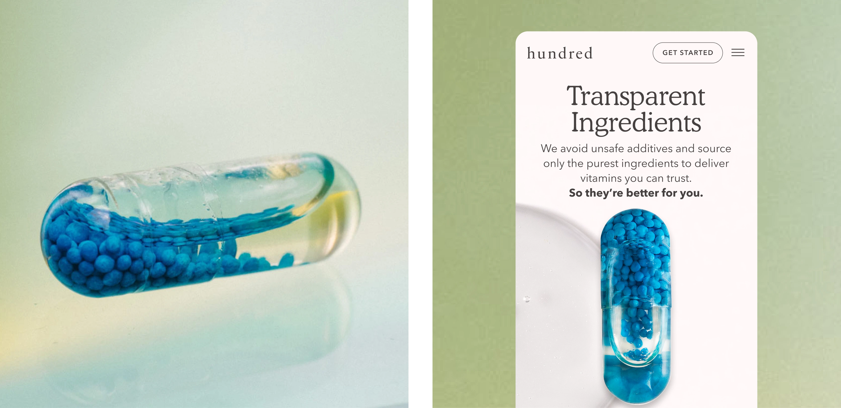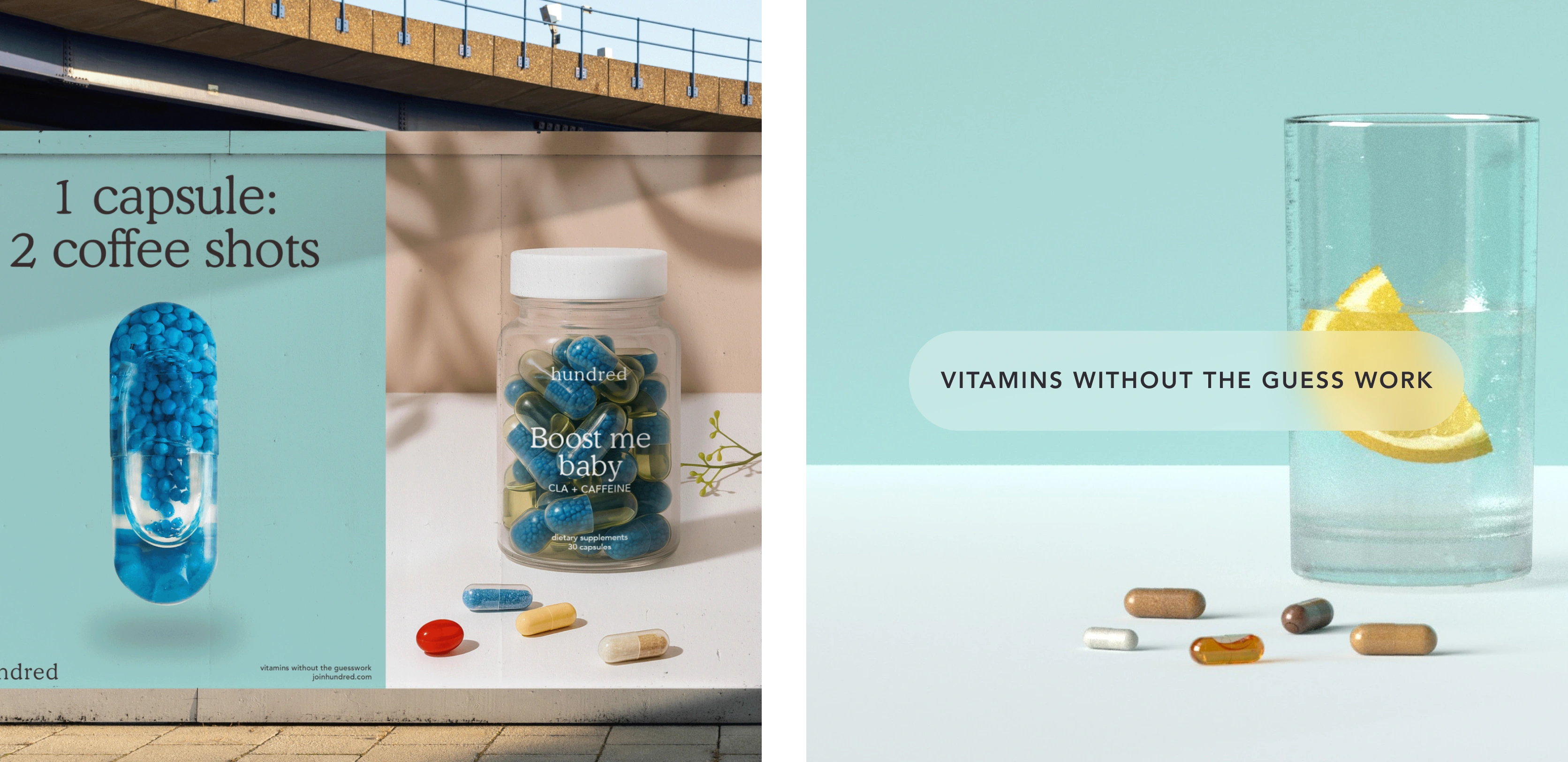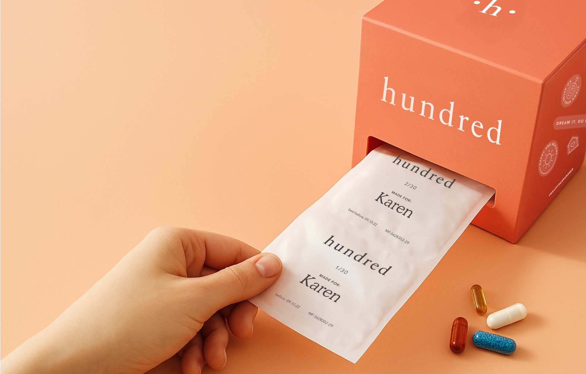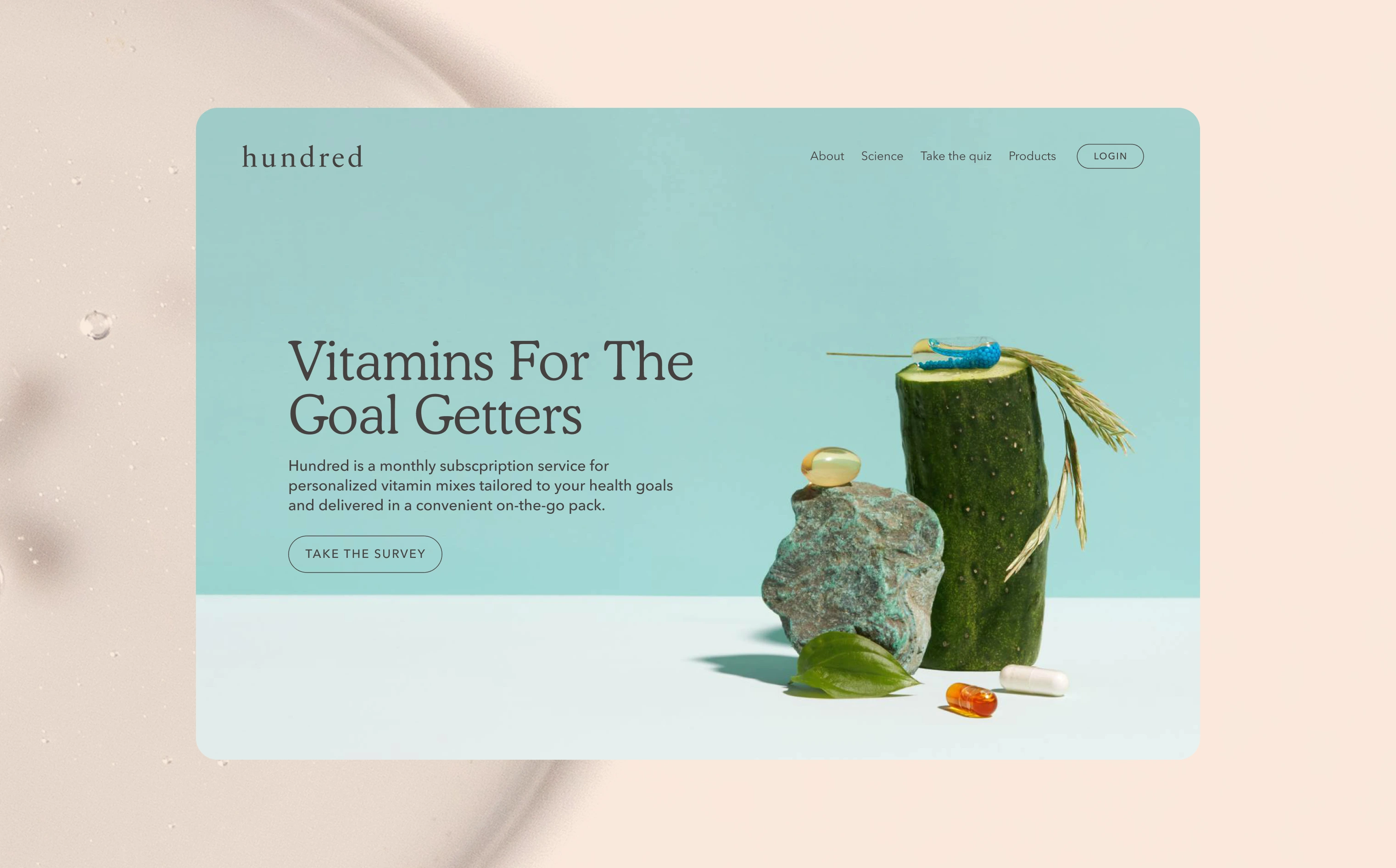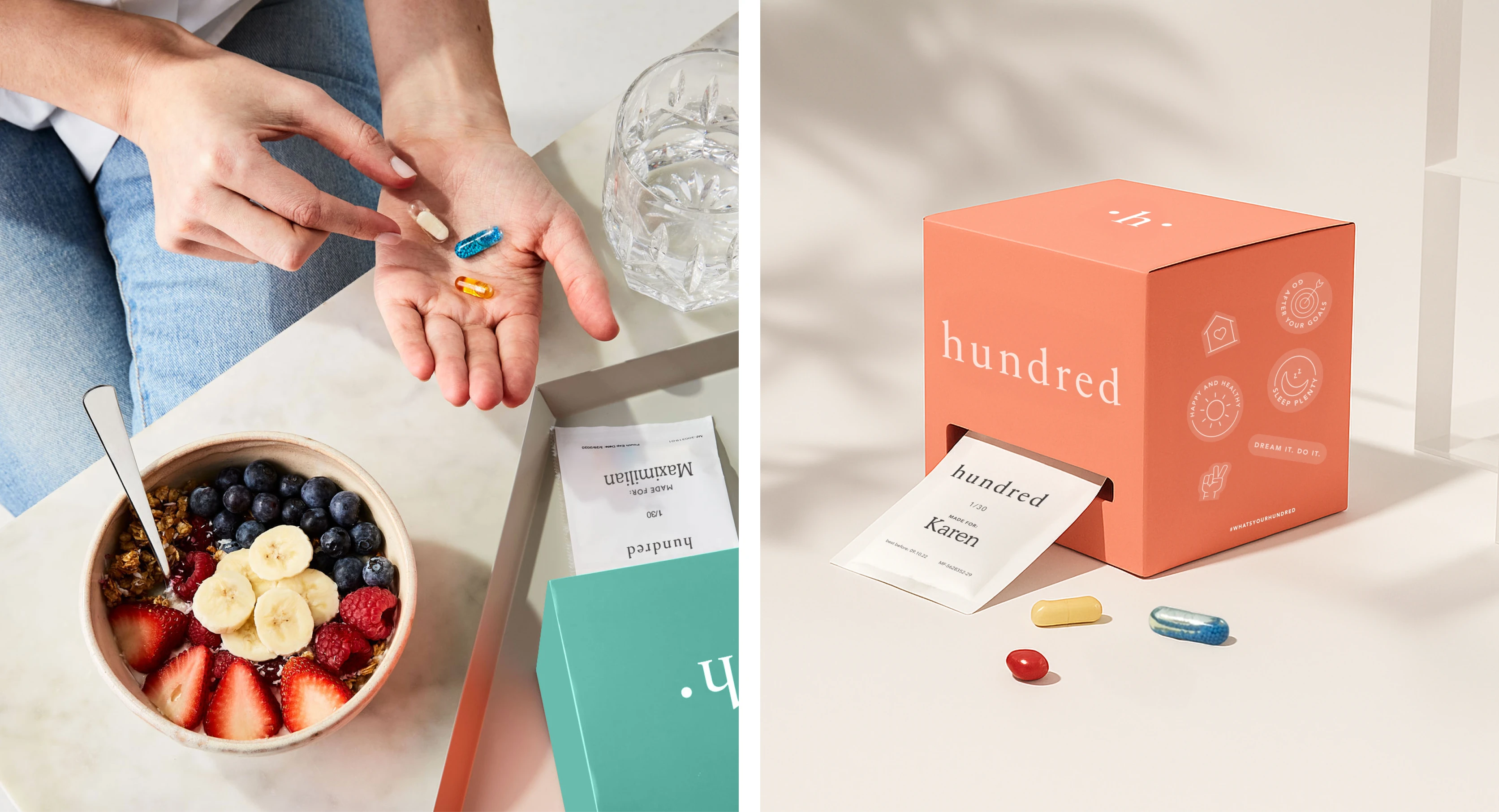 hundred is a personalized supplements brand built to help people reach their health goals and feel their 100% every day. Through a simple subscription model, users complete a short survey and receive a tailored pack of vitamins delivered to their door each month.
