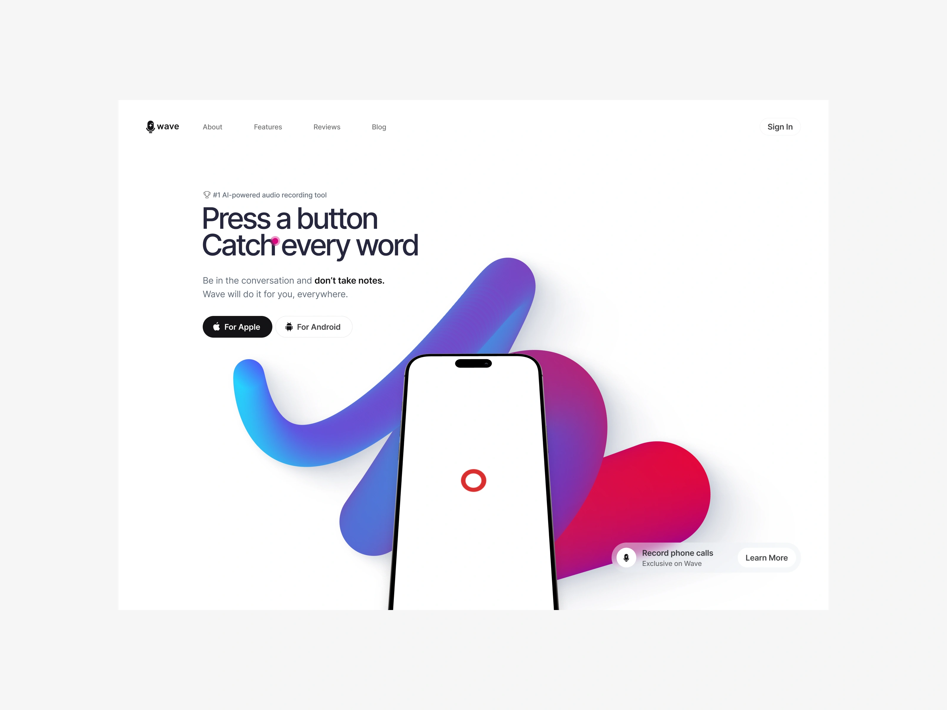 Wave's website was built to show users a tool that removes note-taking from their workflow.