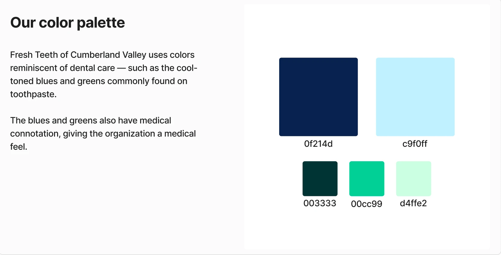 Fresh Teeth of Cumberland Valley was a branding project for a student-led organization focusing on maintaining dental health and tailoring dental information to a student demographic.