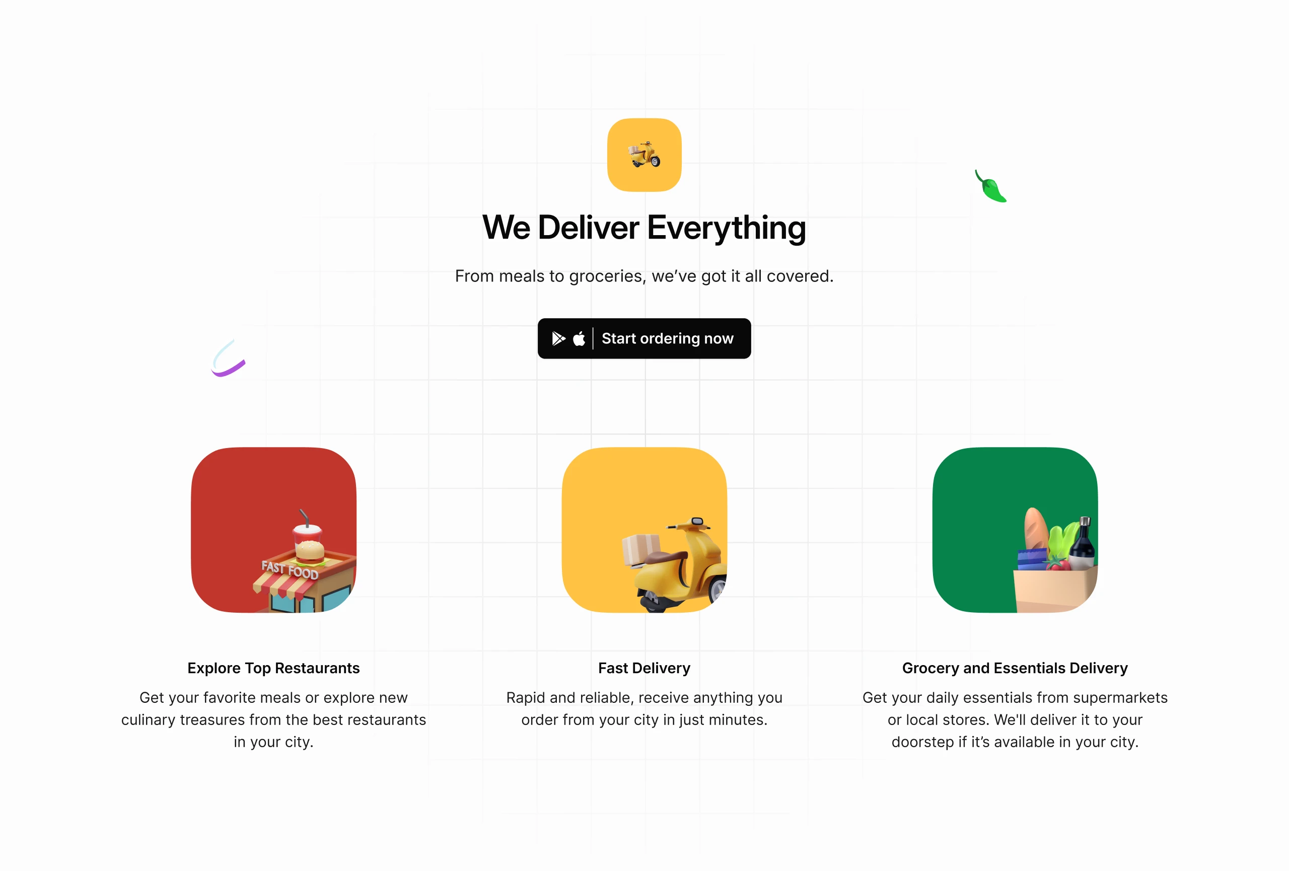 From the ground up, the Foodo site was designed to be clean, modern, and conversion-focused. I mapped out the UX to guide users through Foodo’s core value proposition—fast delivery from restaurants and stores—while prompting action at every stage. Using Figma, we designed modular sections that highlight top categories, showcase app features, and explain the ordering process visually. Scroll-based transitions and icon-based navigation elements were added to keep the experience engaging across all devices.