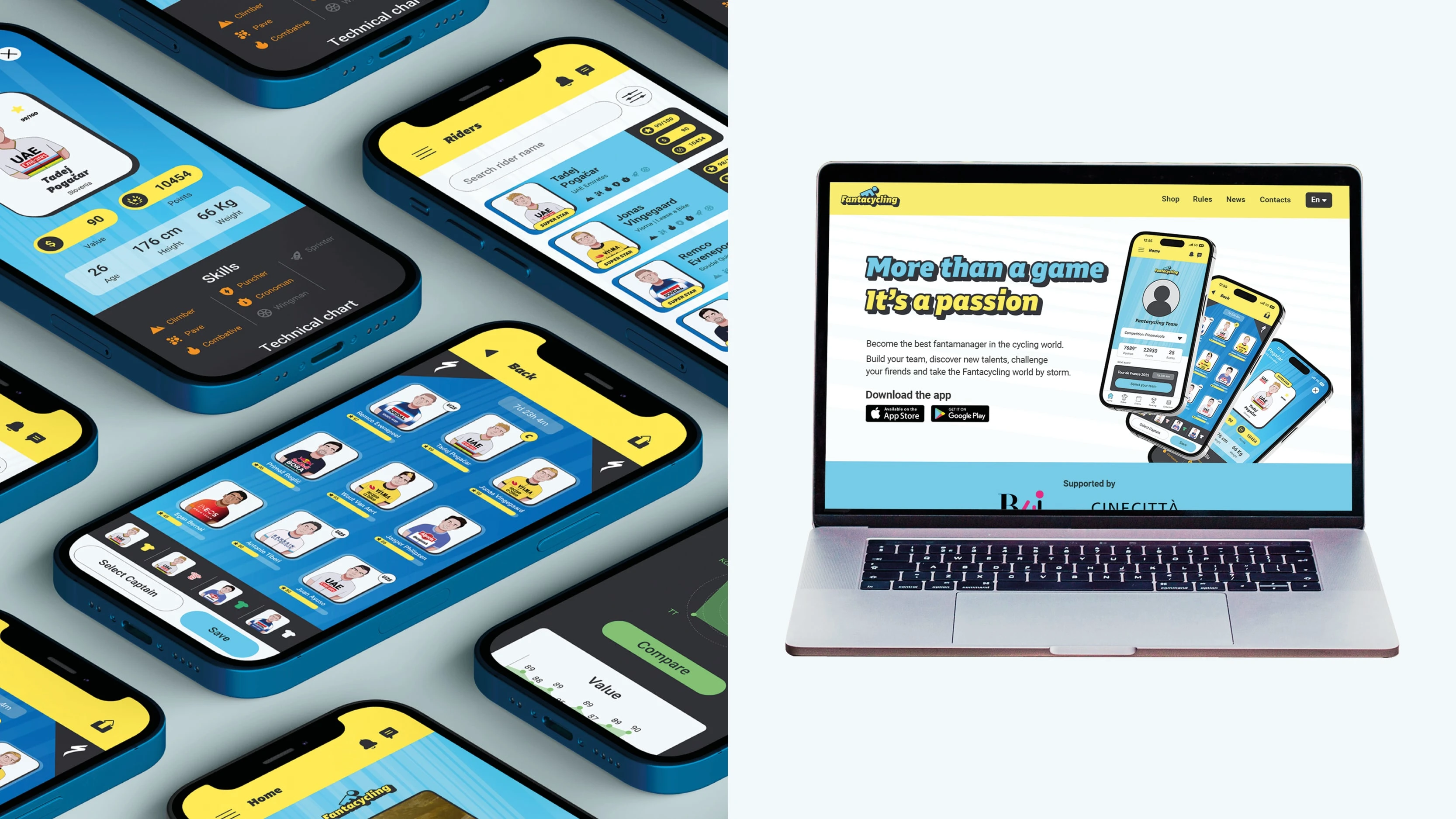 Fantacycling, a fantasy sports app and media platform for cycling fans, needed a rebrand to refresh its identity and better reflect its community-driven, playful spirit. The existing design lacked cohesion and failed to capture the excitement and energy of the sport.
