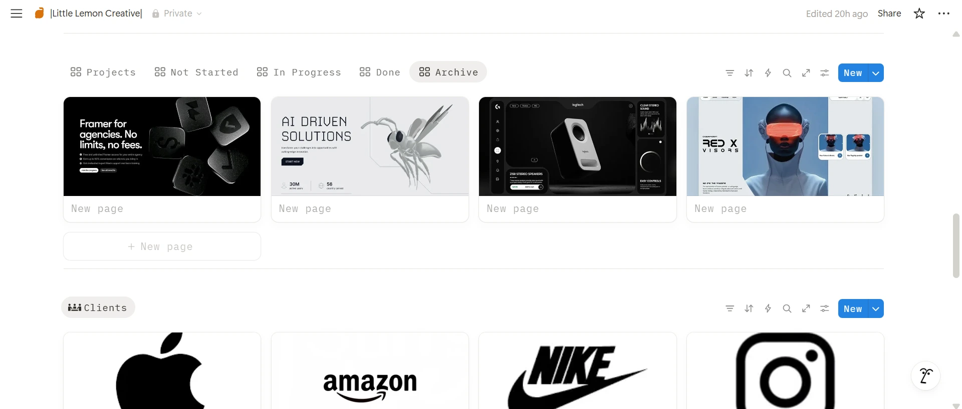 A complete Notion workspace for a design agency - manage clients, projects, tasks, and feedback all in one place.