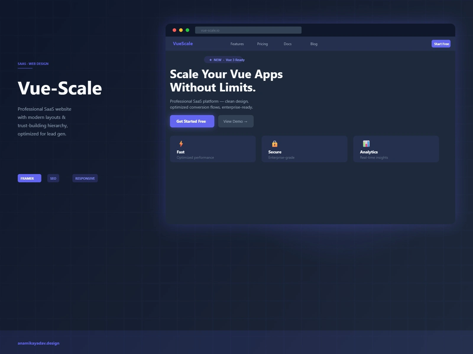 Professional SaaS website for Vue-Scale — modern layouts, trust-building visual hierarchy, responsive design, and optimized lead generation flows.