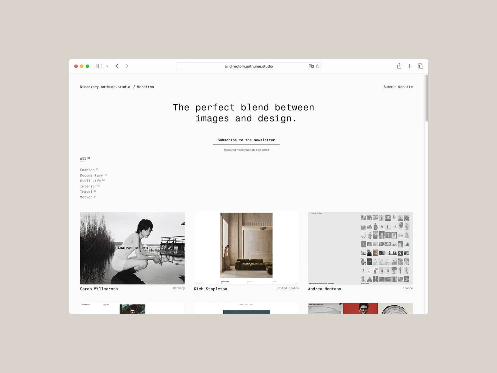 Directory by Anthume is a rich resource for lovers of creativity. This platform showcases a rich selection and combines the creativity of photography and web design.