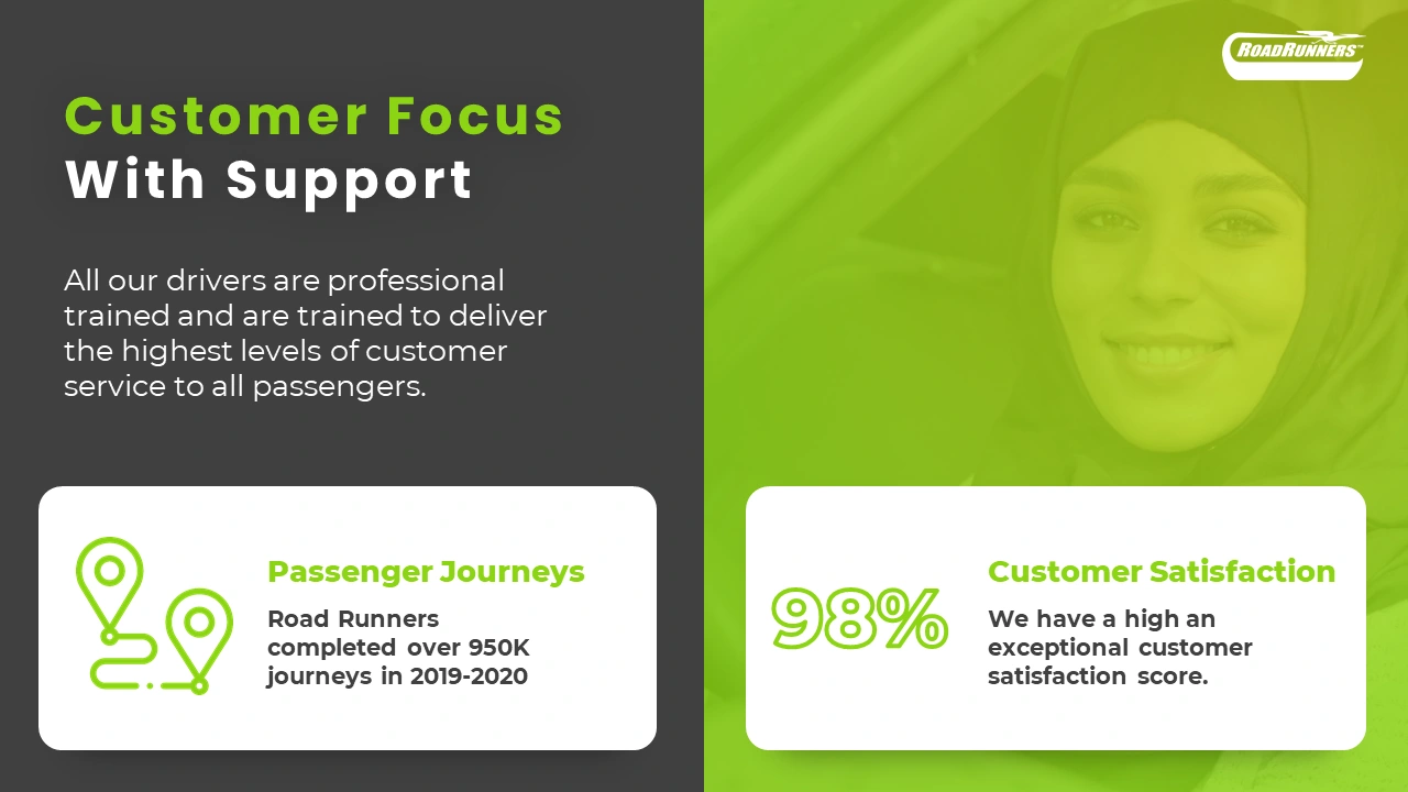 All our drivers are professional trained and are trained to deliver the highest levels of customer service to all passengers.