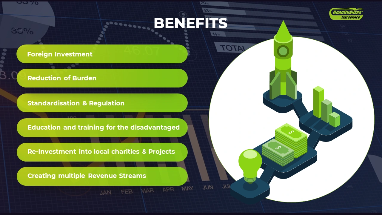 It highlights investment in dedicated training academies, nationwide rollout of standards, job creation, and multiple revenue streams, positioning the initiative as a scalable, reform-driven solution for modernizing the taxi industry.