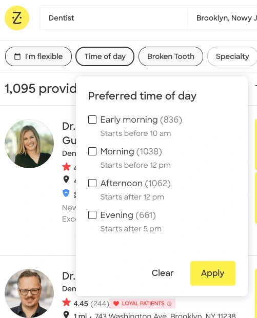 💡This feature ensures a perfect match for the user by sorting the best-matching doctors from the full list of available options based on your specified type of care and health issue.