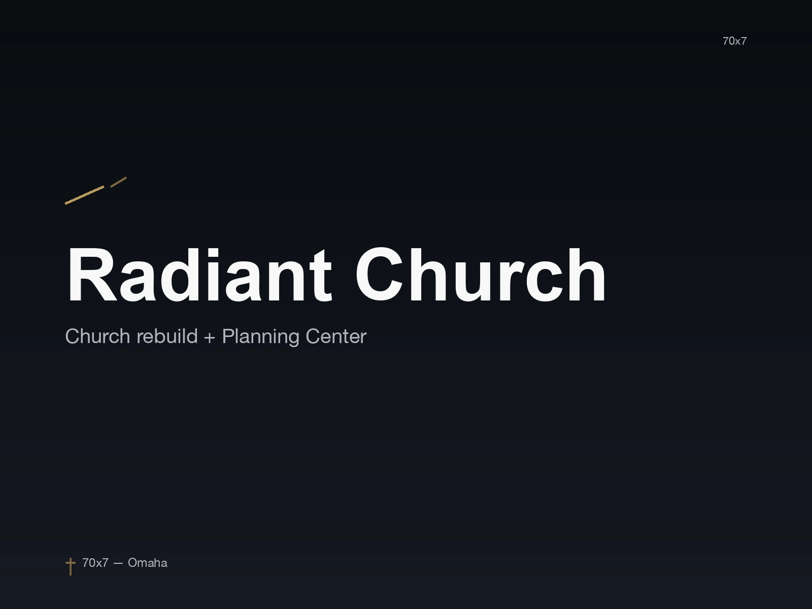 Church site rebuild + Planning Center integration for Radiant Church KC. 6-day delivery. PageSpeed 94 mobile. Admin time 90 min → 10 min.