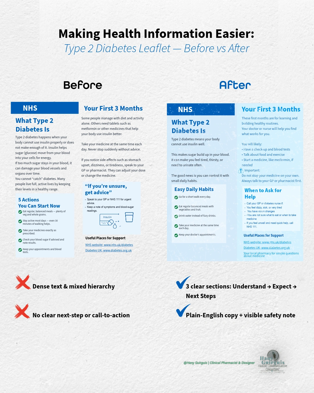 A collection of NHS & NICE-aligned designs to support patient understanding and safety.