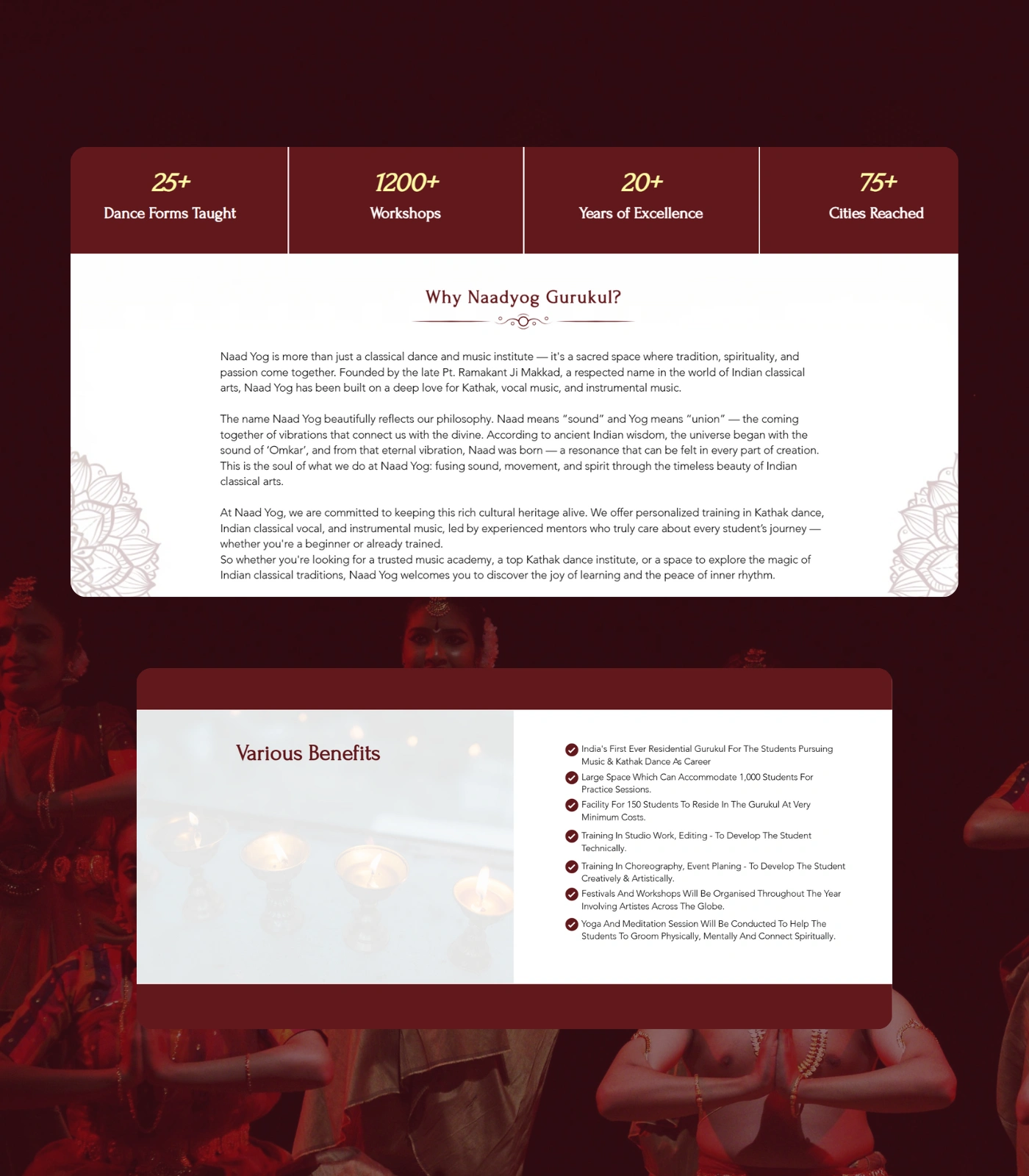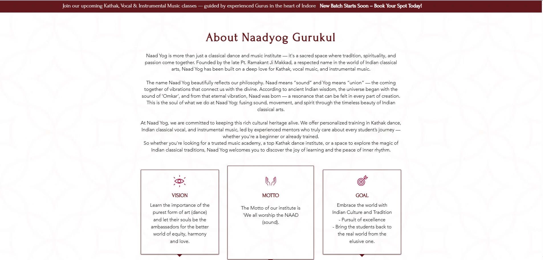 We designed the website for Guru Ragini Makkad, winner of India’s Got Talent, to establish her personal brand and digital presence. The site highlights her journey, showcases upcoming courses and classes, and features a gallery to capture her work and performances. Additionally, it provides essential details such as class schedules and location, making it a complete platform for students and followers to connect with her offerings.