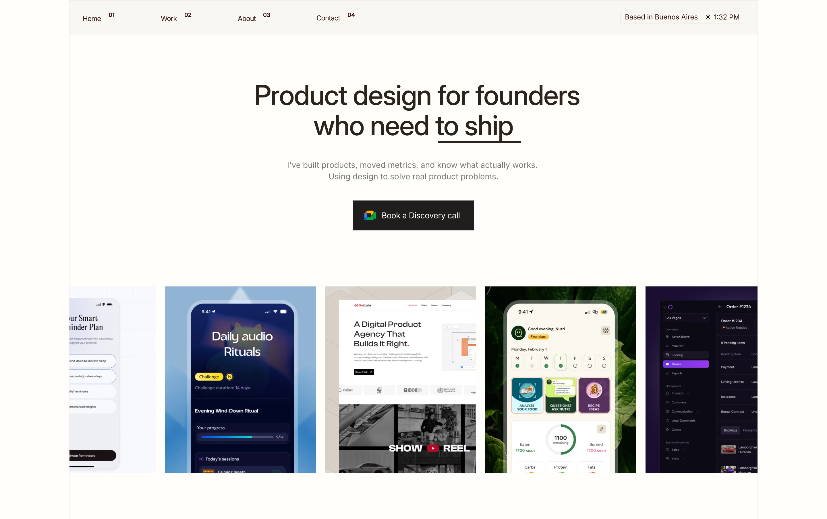 My old portfolio looked like most design portfolios - process breakdowns, skill lists, and case studies that said a lot without showing much. Founders don't have time for that. They want to see the work, understand what you've shipped, and decide if you're the right person fast.