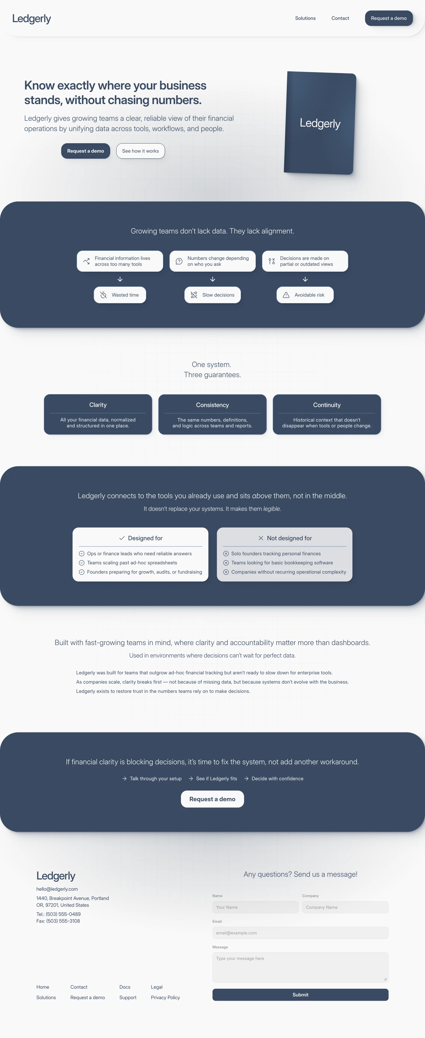 Ledgerly is a fictional seed-stage B2B SaaS in the finance/operations space.