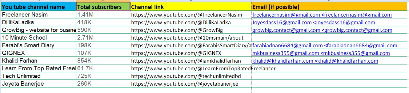 I did lead generation job. it's about YouTube Channel info.