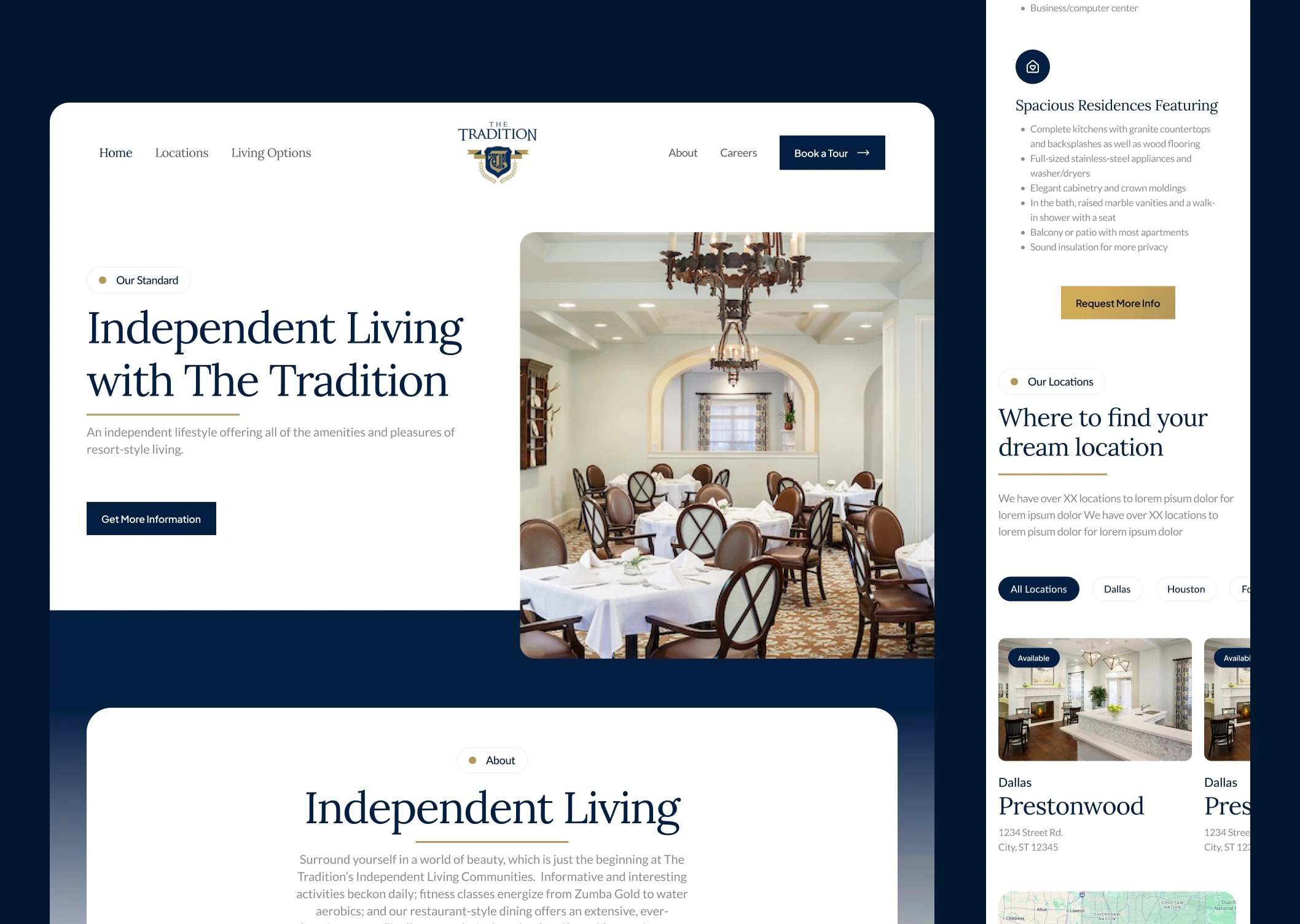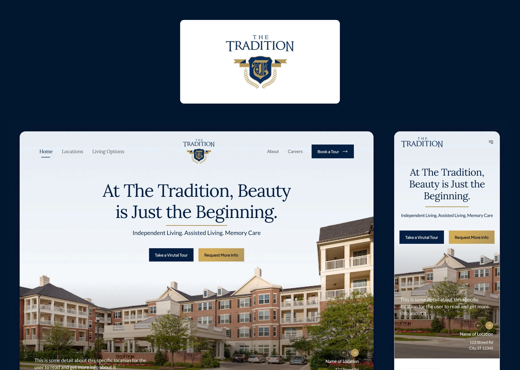 Worked with The Tradition team to create a new website to increased engagement and appointments to tour their multiple locations.