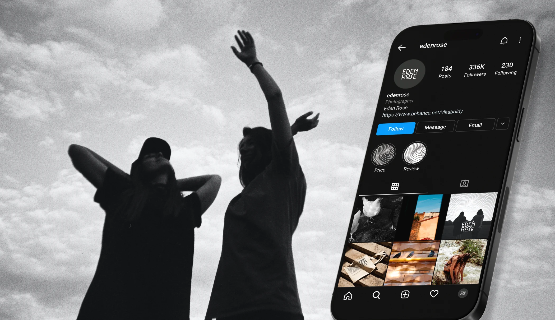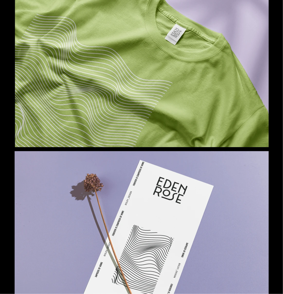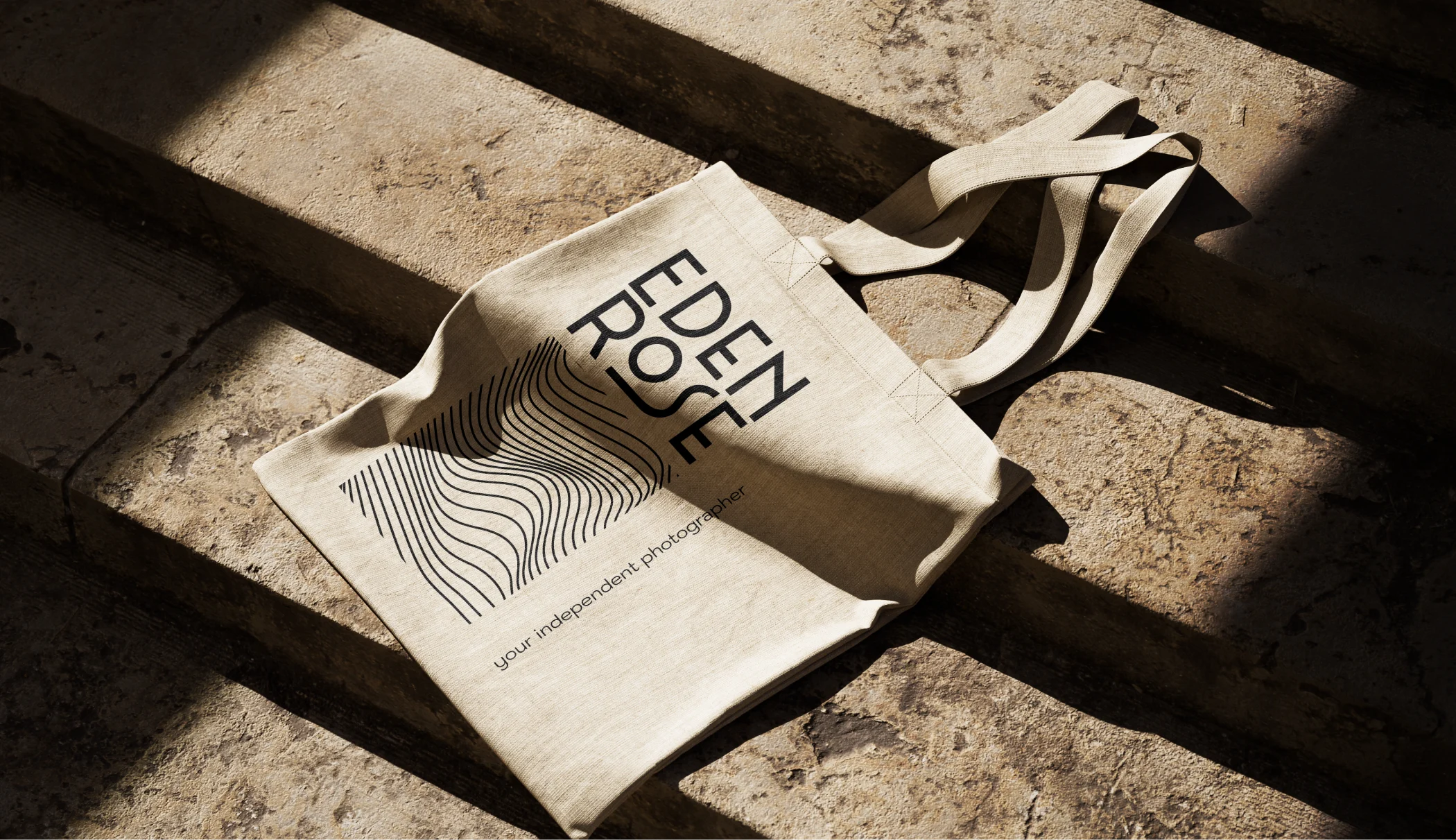 A new logo and business card design, along with additional brand identity elements, were developed for independent photographer Eden Rose.