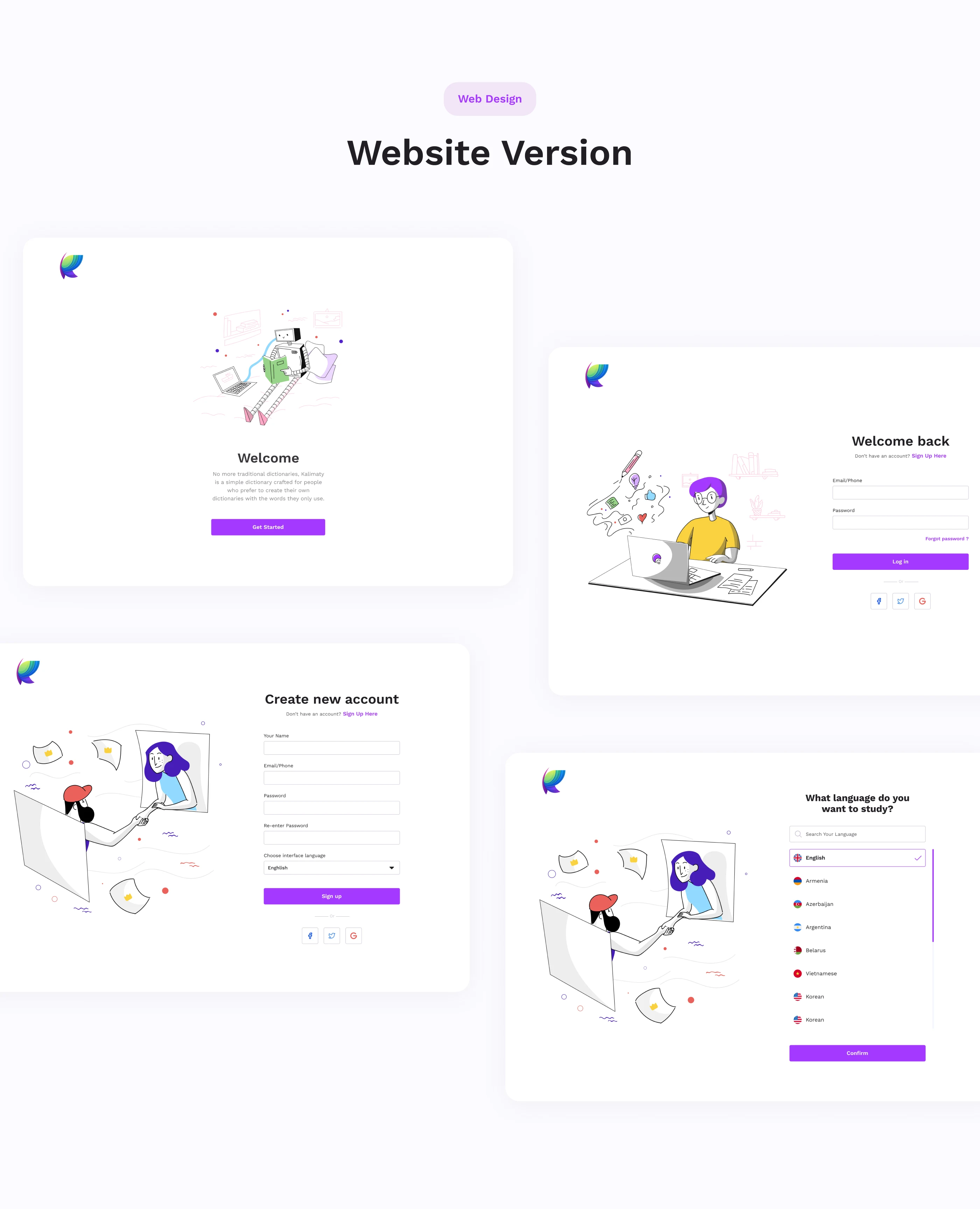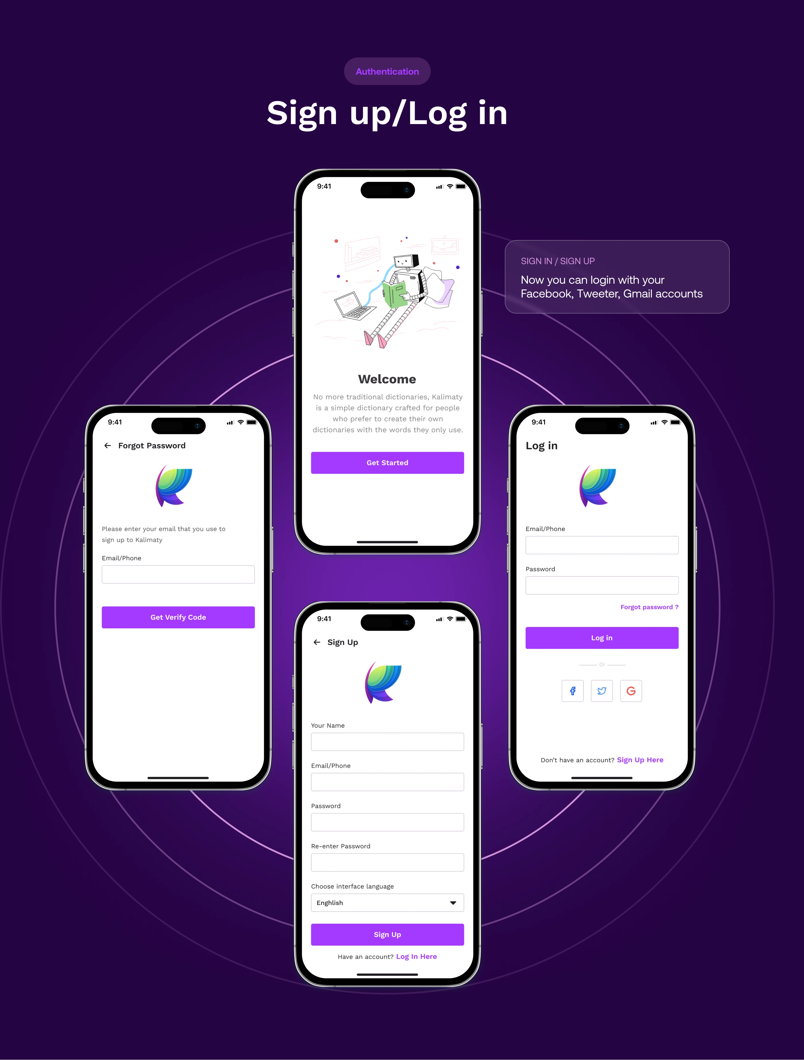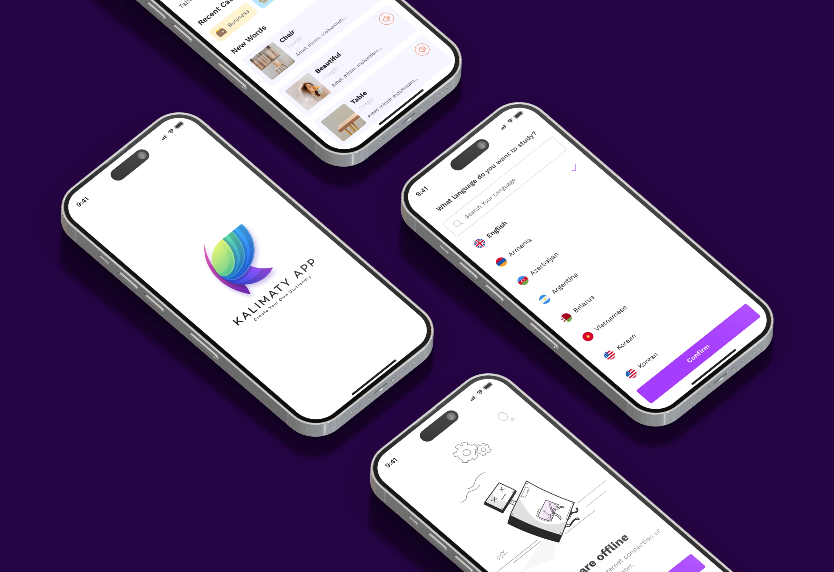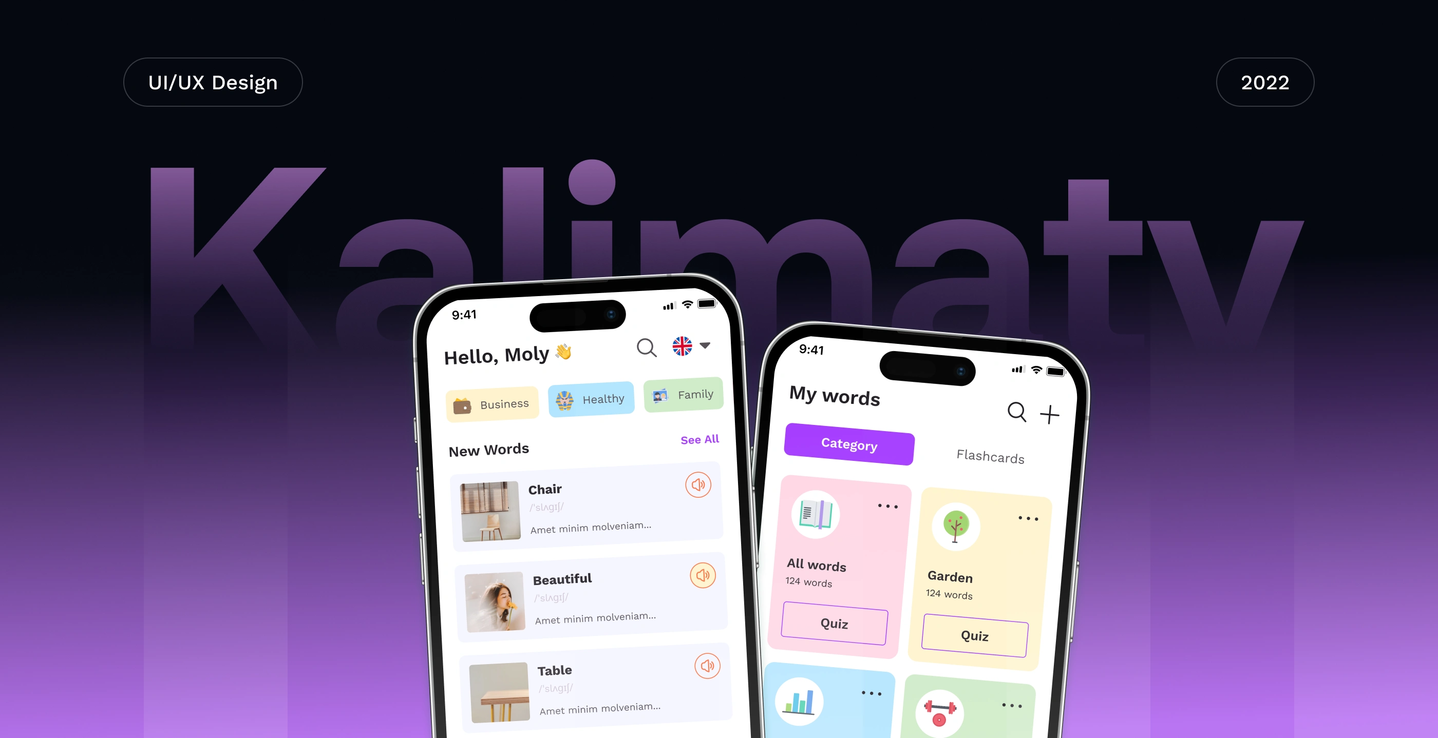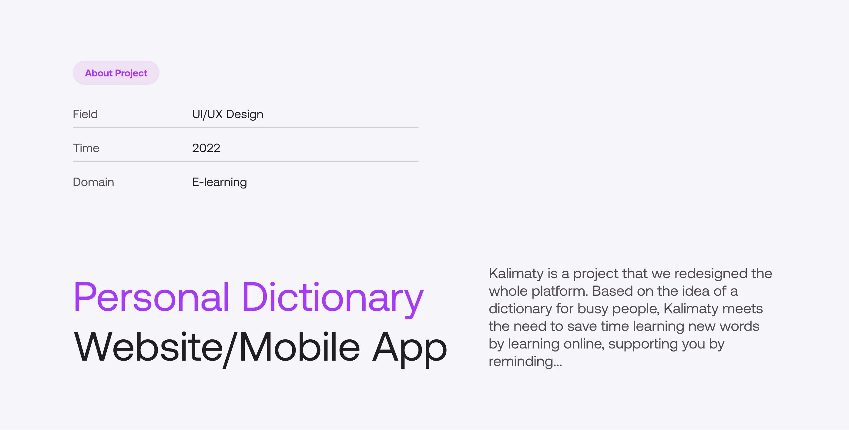 The UI/UX design for the Kalimaty - Personal Dictionary Mobile App was crafted to provide a seamless and engaging user experience. The design emphasizes simplicity and functionality, allowing users to easily add, organize, and review their vocabulary with an intuitive and visually appealing interface.