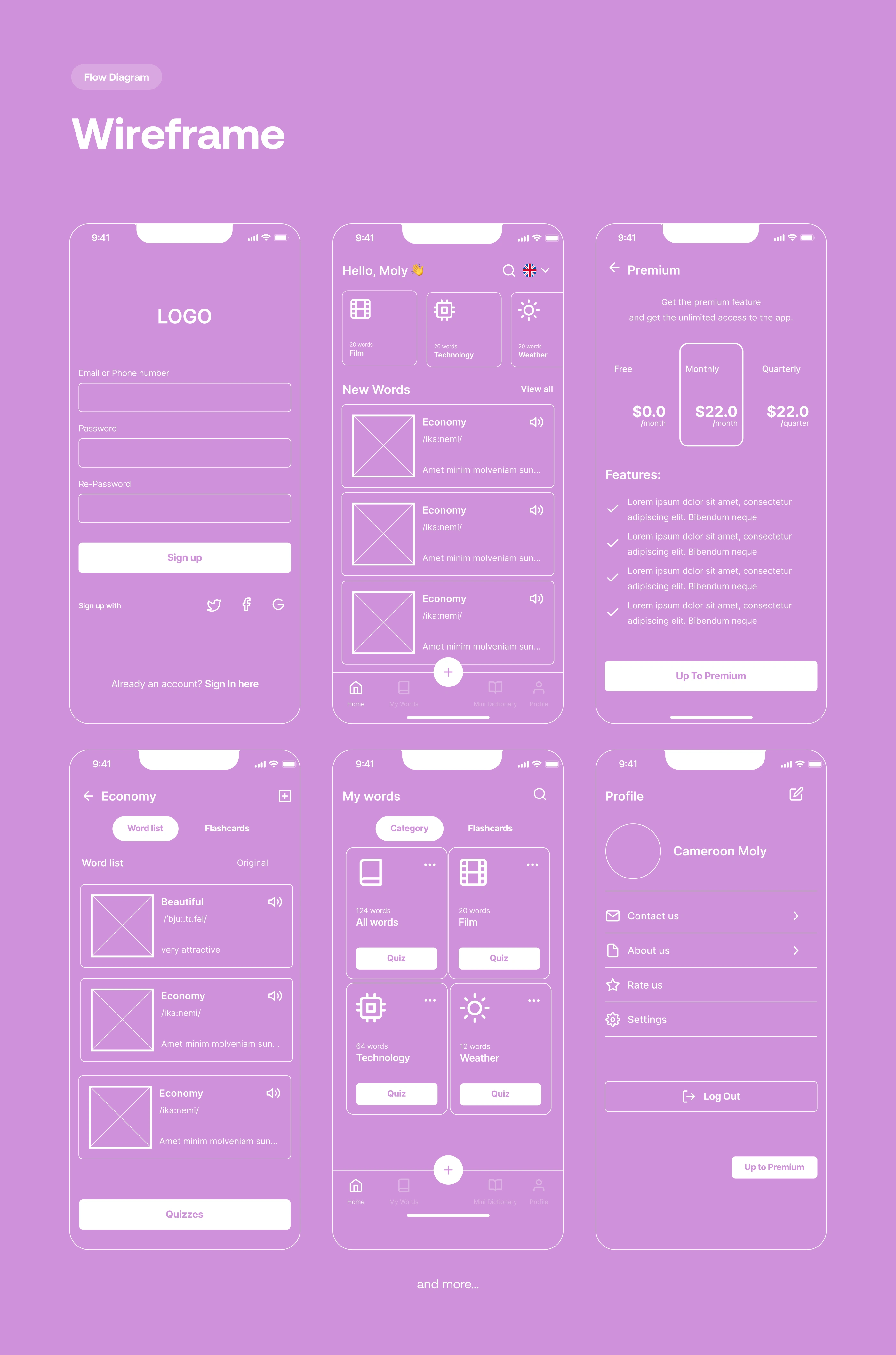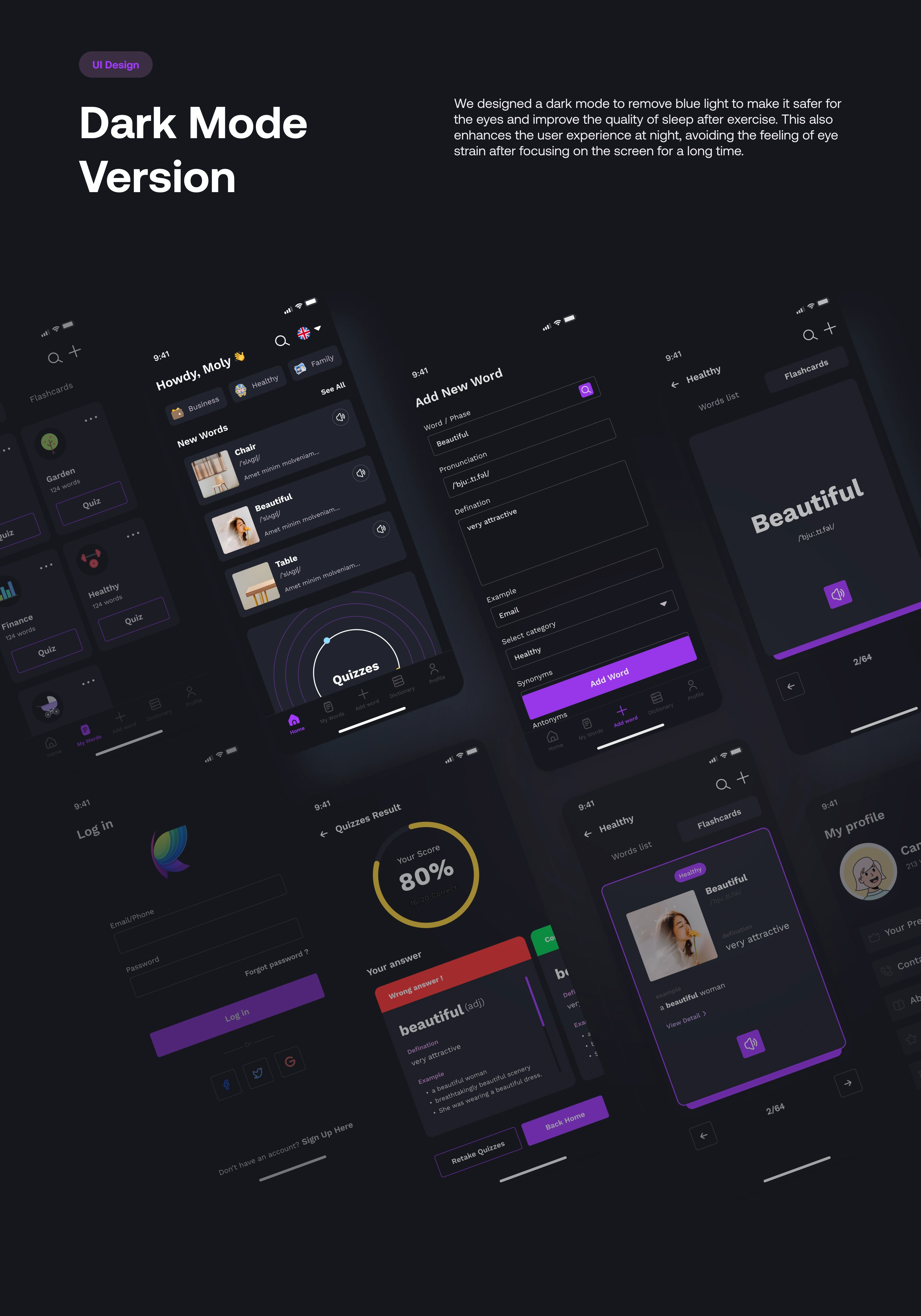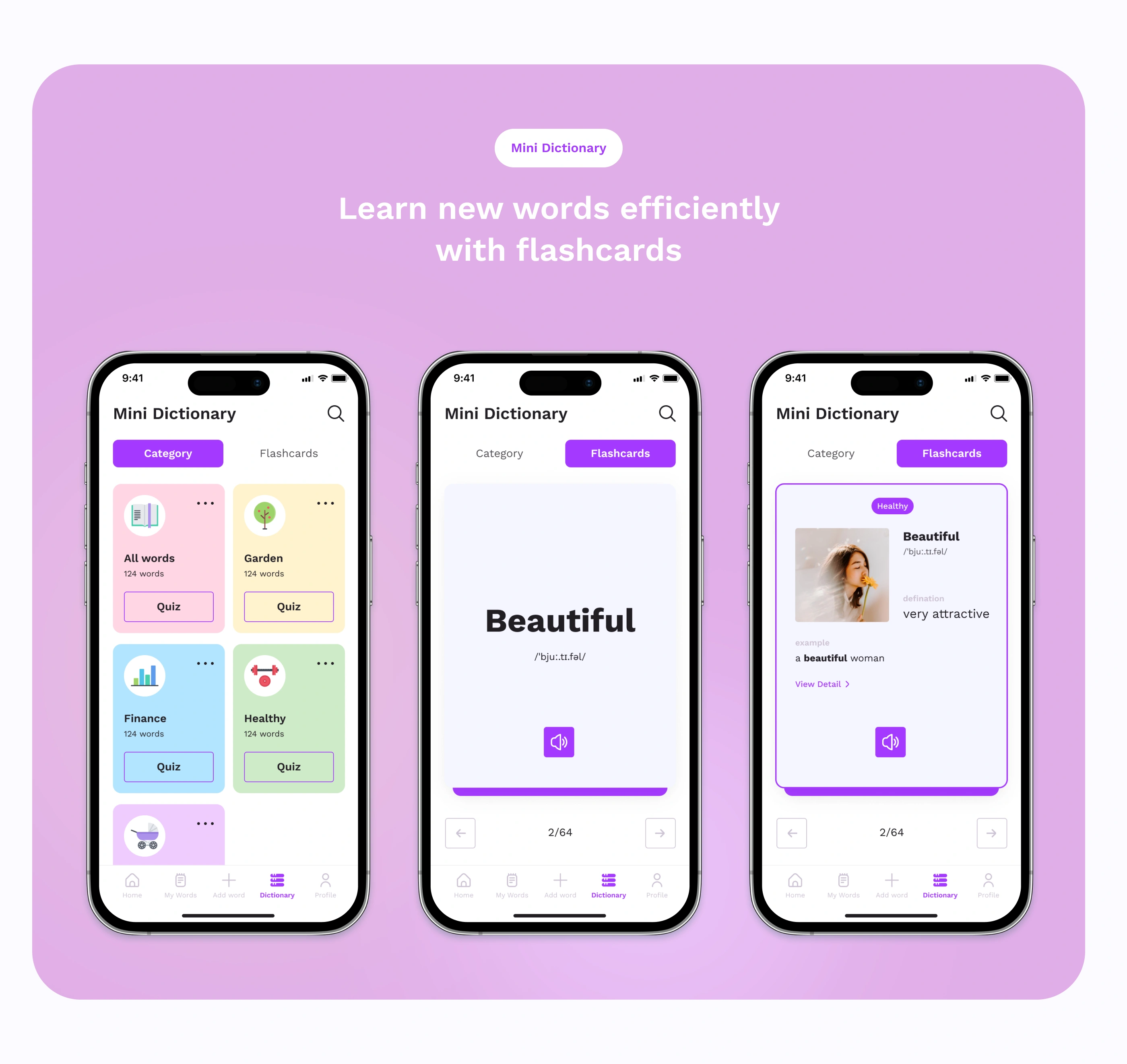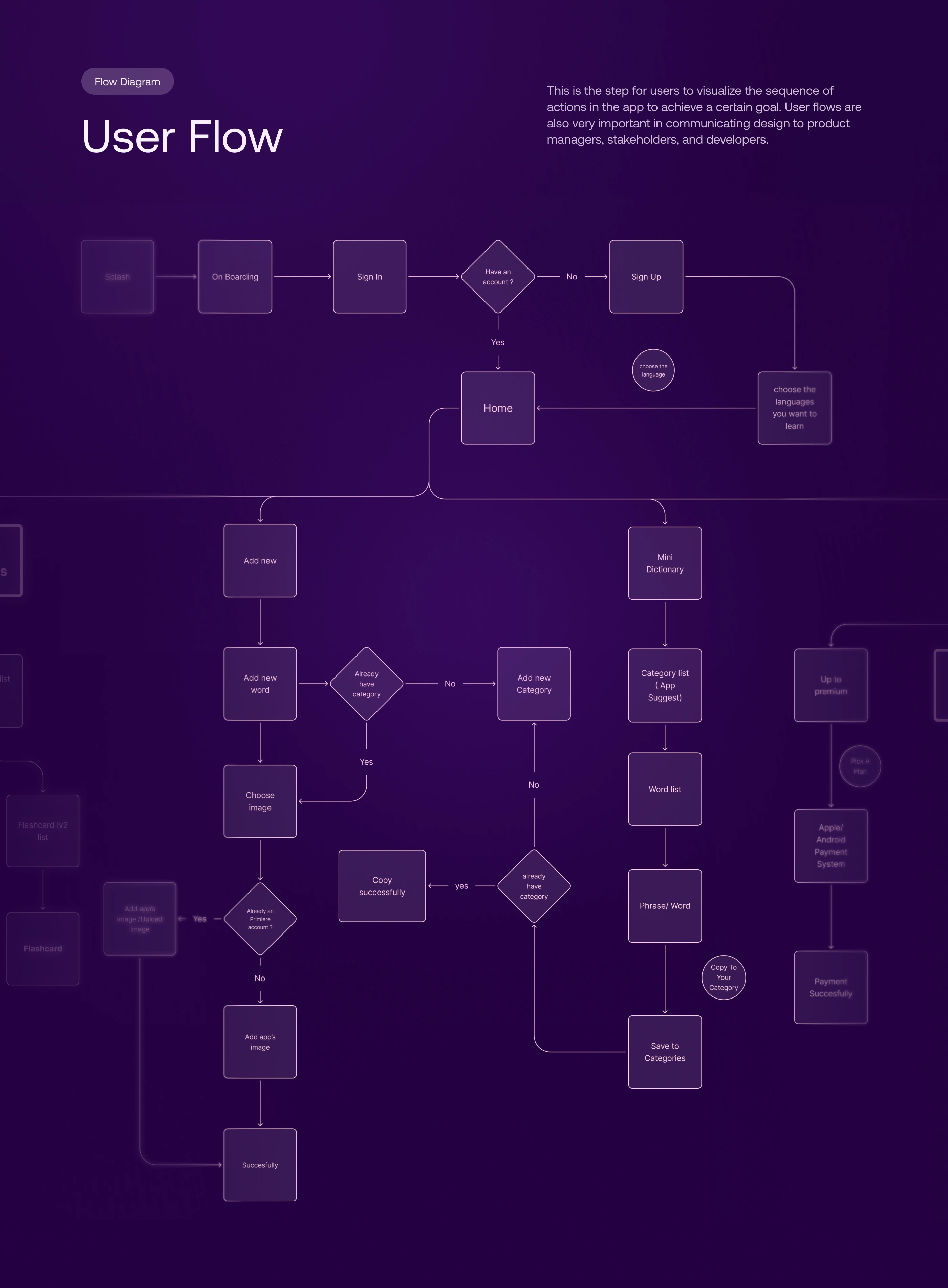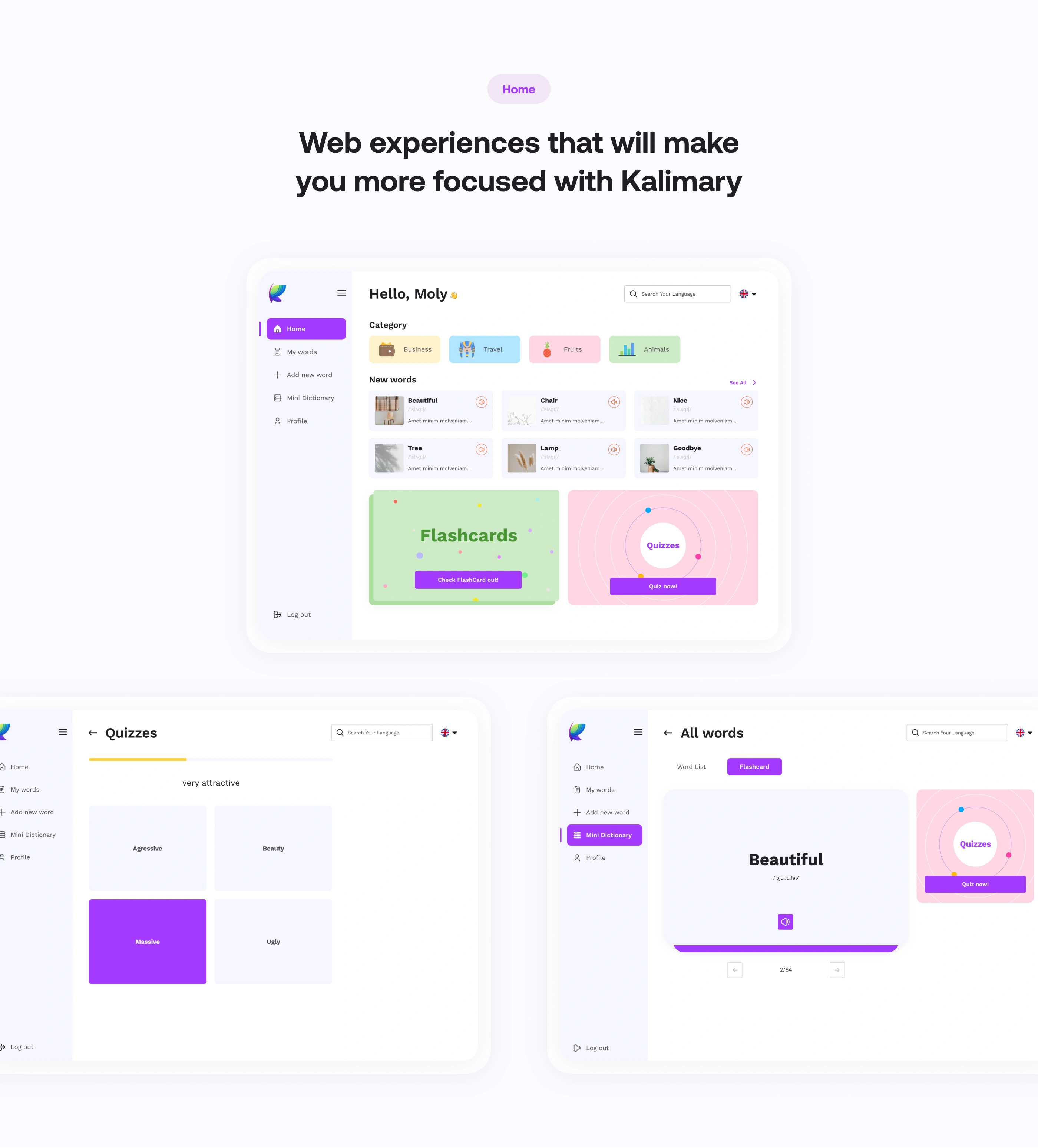 The UI/UX design for the Kalimaty - Personal Dictionary Mobile App was crafted to provide a seamless and engaging user experience. The design emphasizes simplicity and functionality, allowing users to easily add, organize, and review their vocabulary with an intuitive and visually appealing interface.