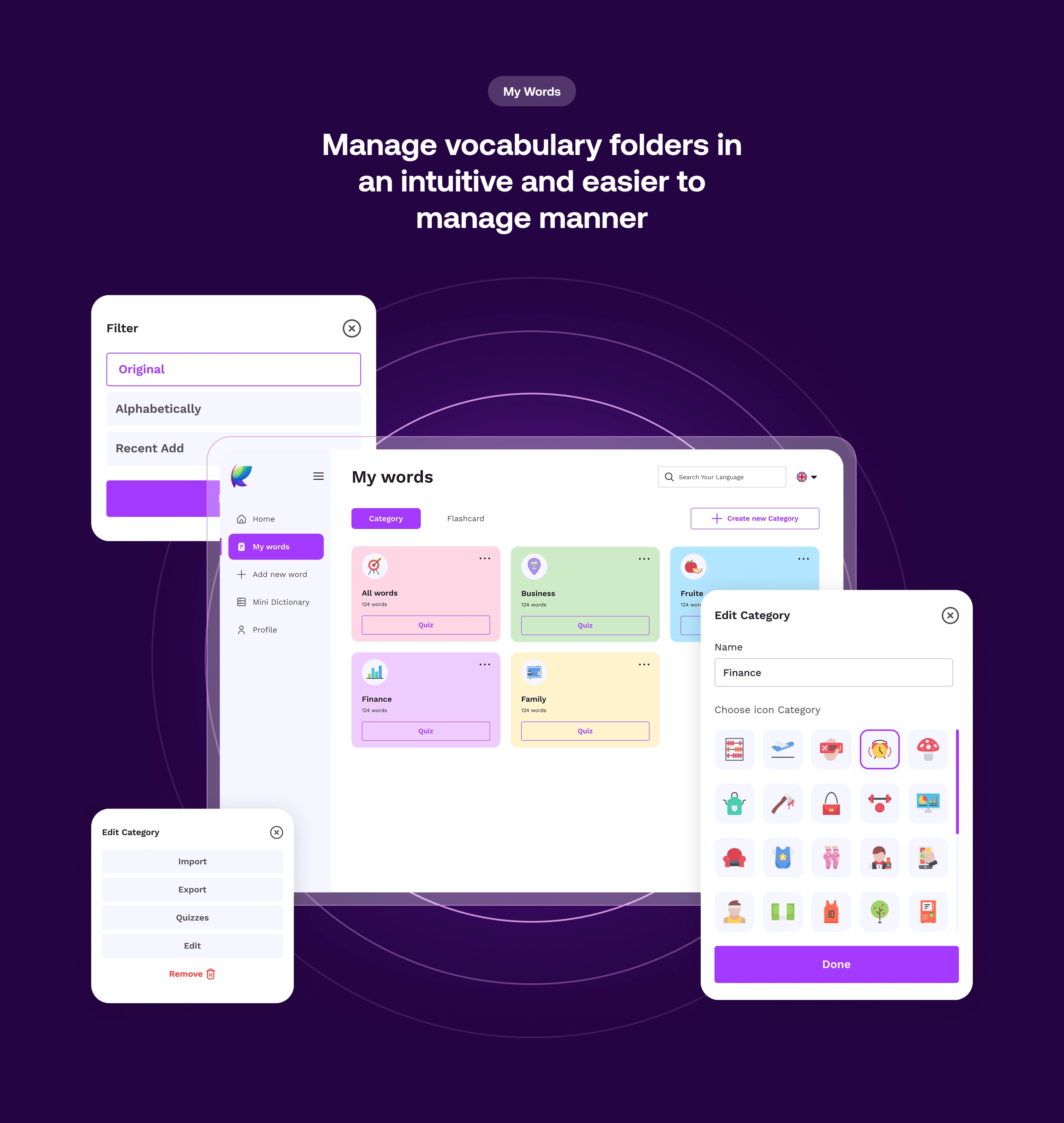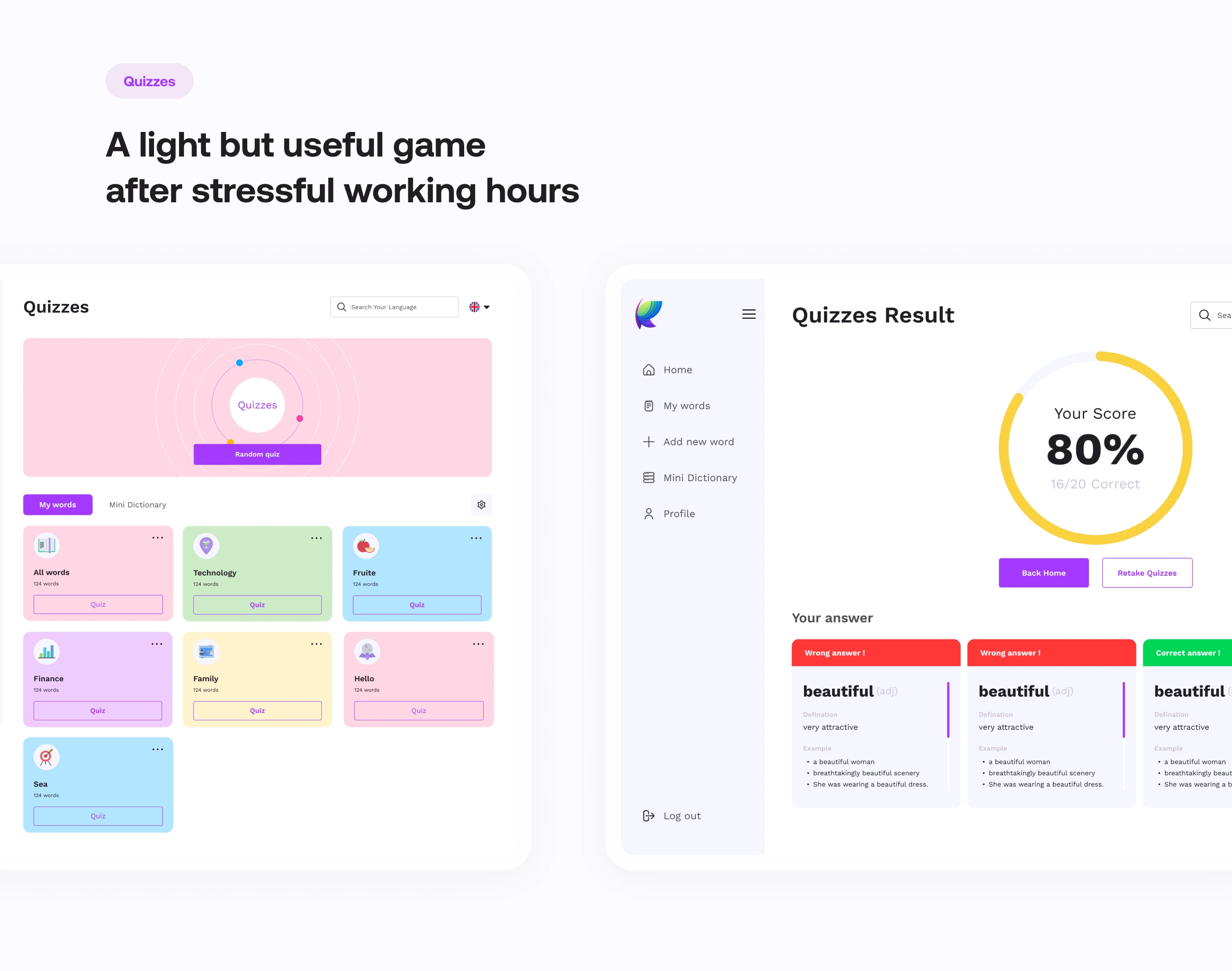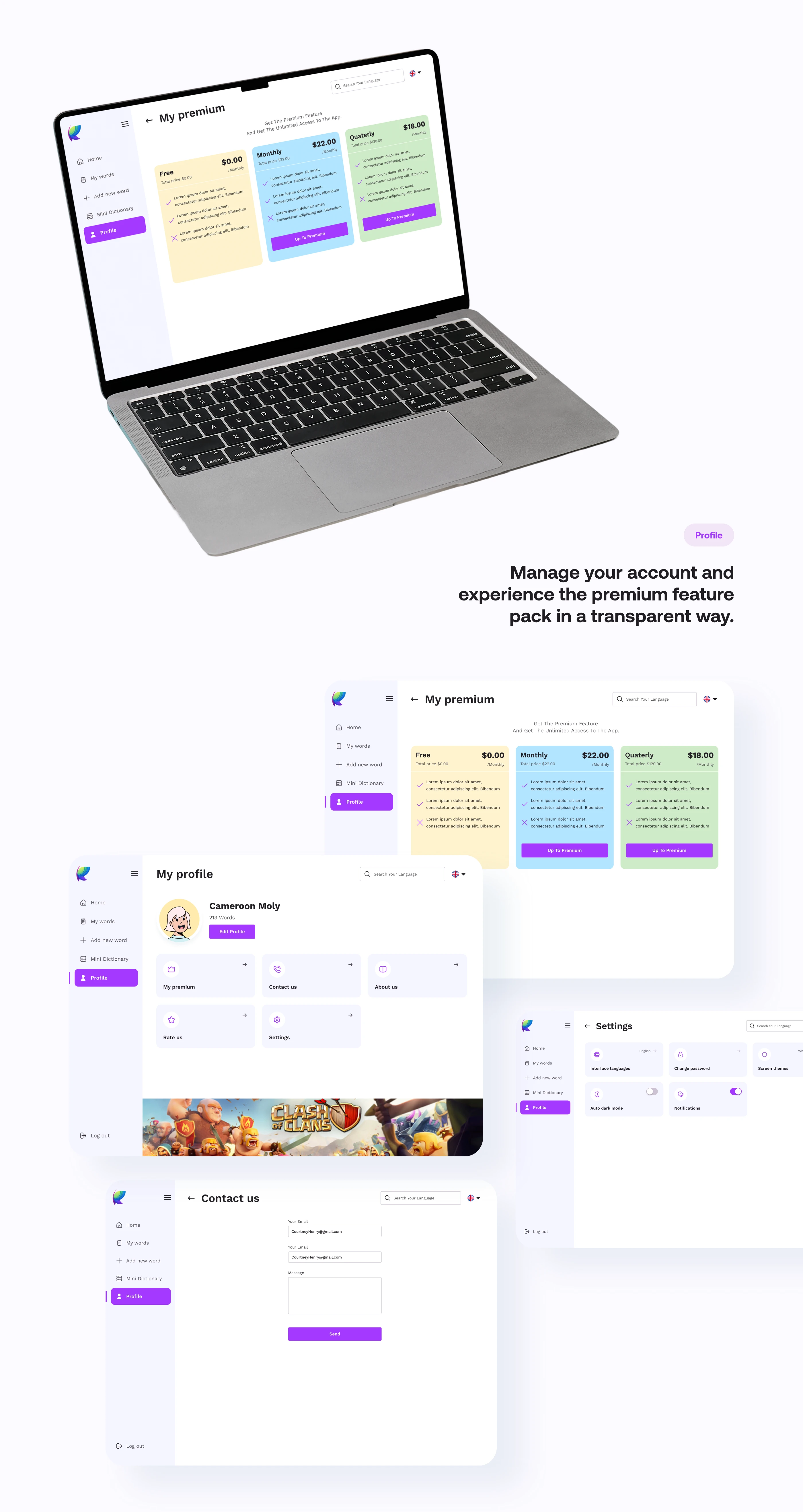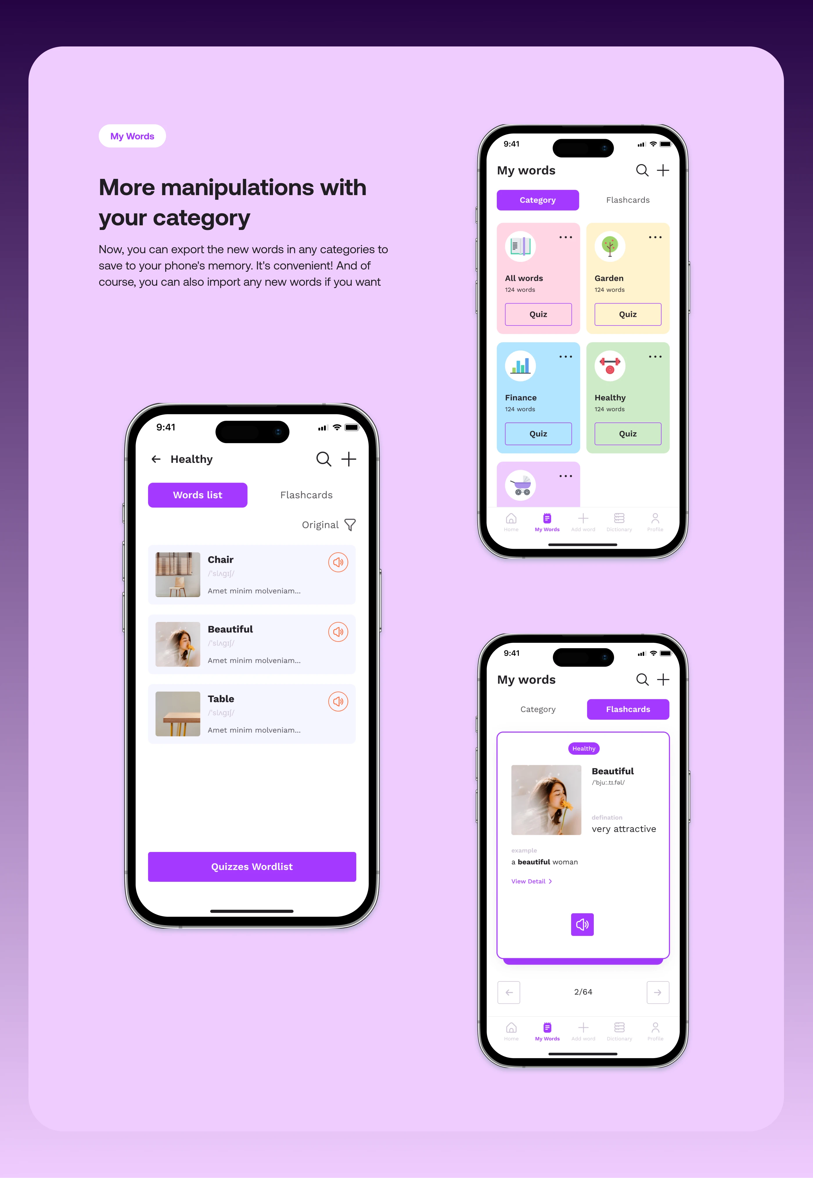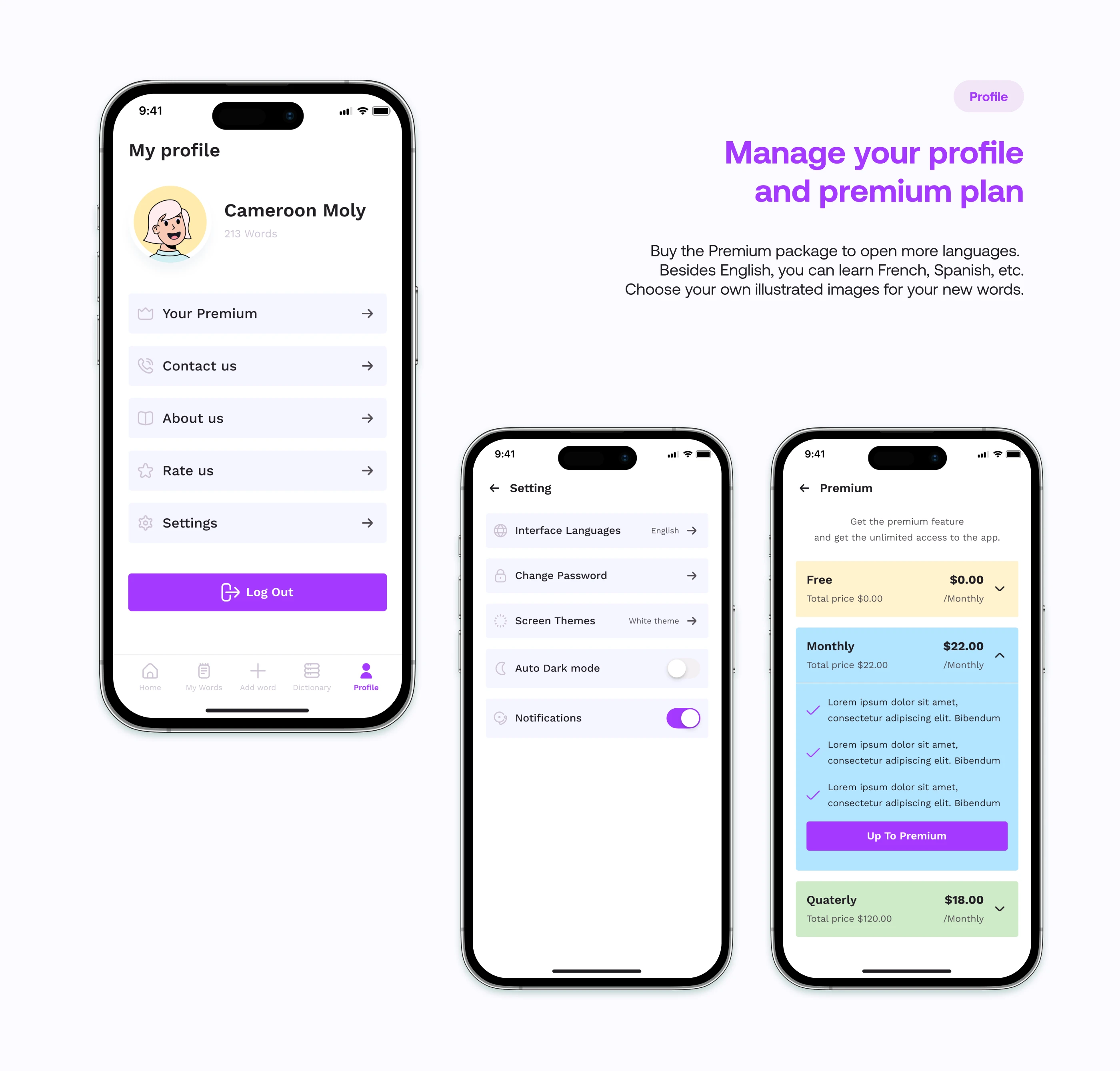 The UI/UX design for the Kalimaty - Personal Dictionary Mobile App was crafted to provide a seamless and engaging user experience. The design emphasizes simplicity and functionality, allowing users to easily add, organize, and review their vocabulary with an intuitive and visually appealing interface.