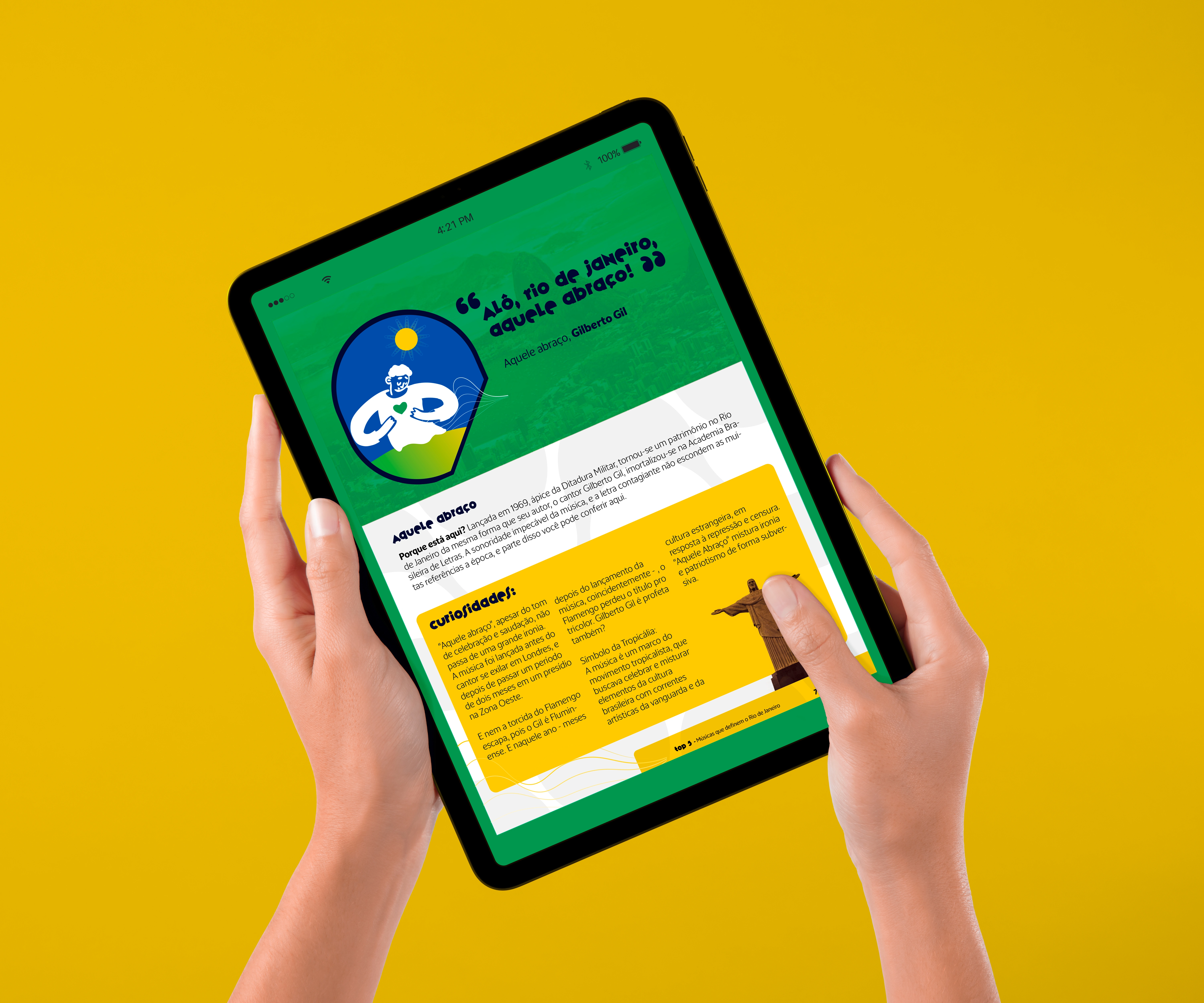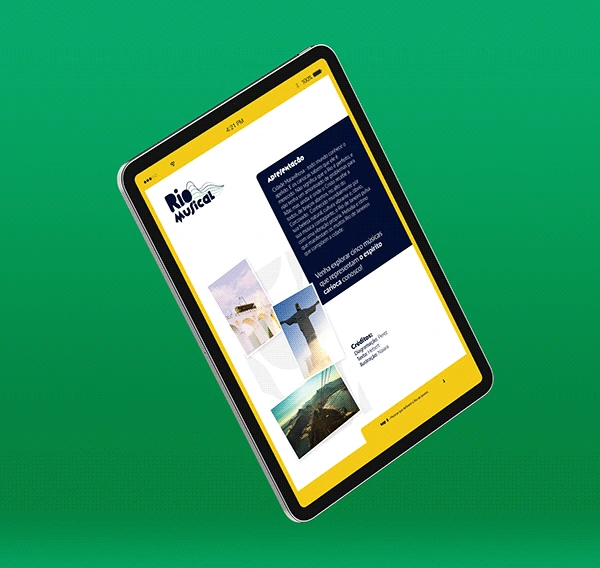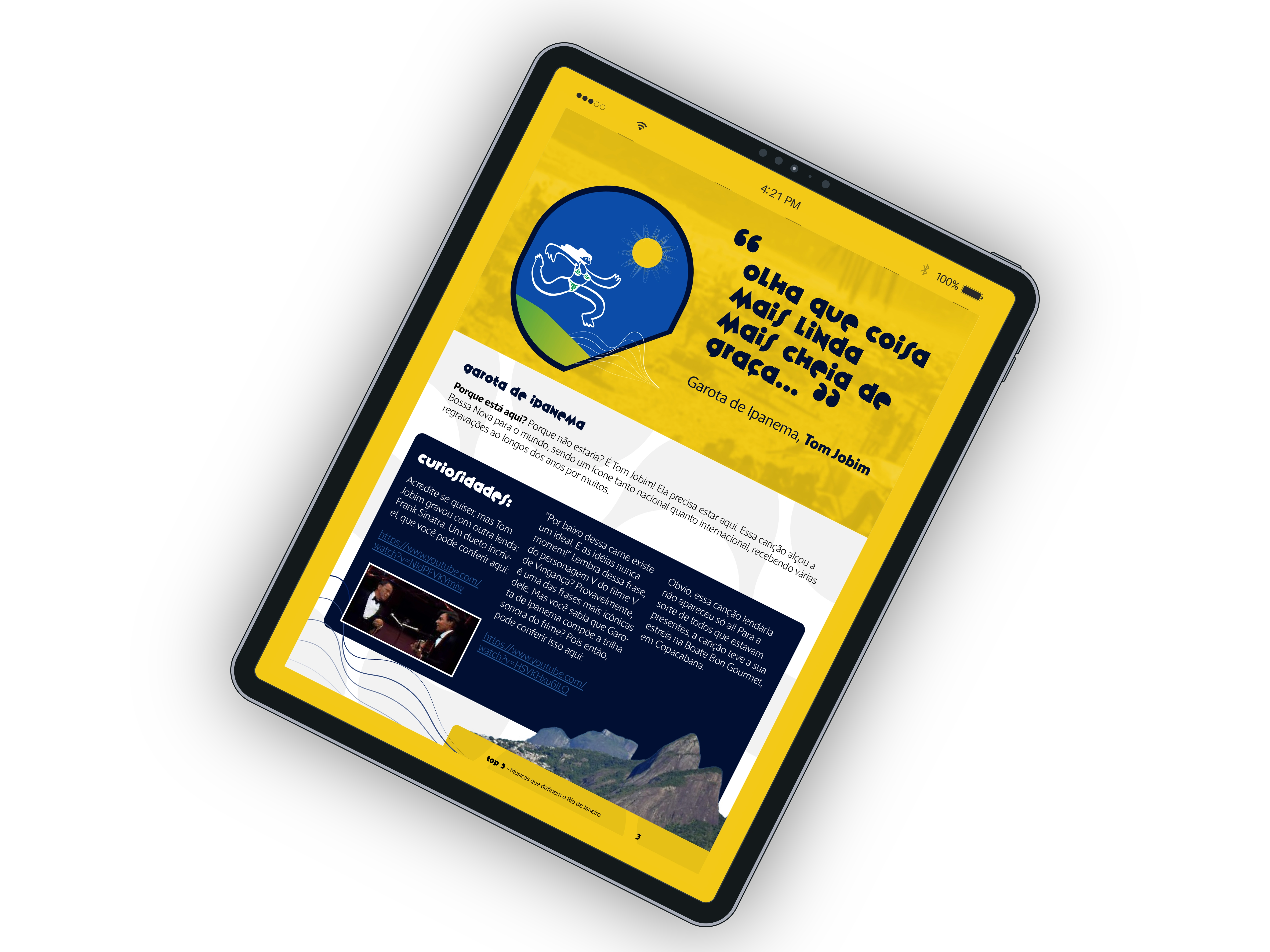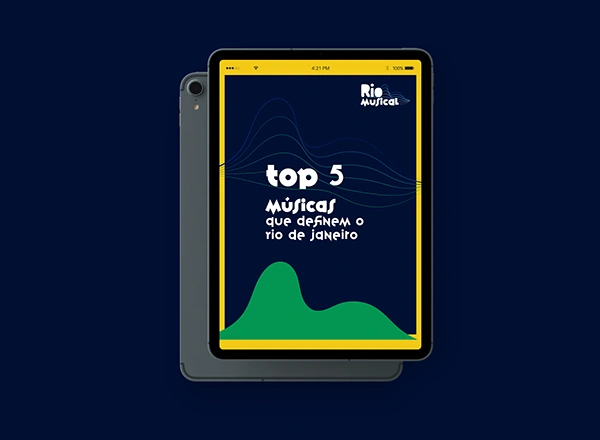 A visual identity and editorial layout for an e-book exploring the deep connection between the music, history, and vibrant culture of Rio de Janeiro.