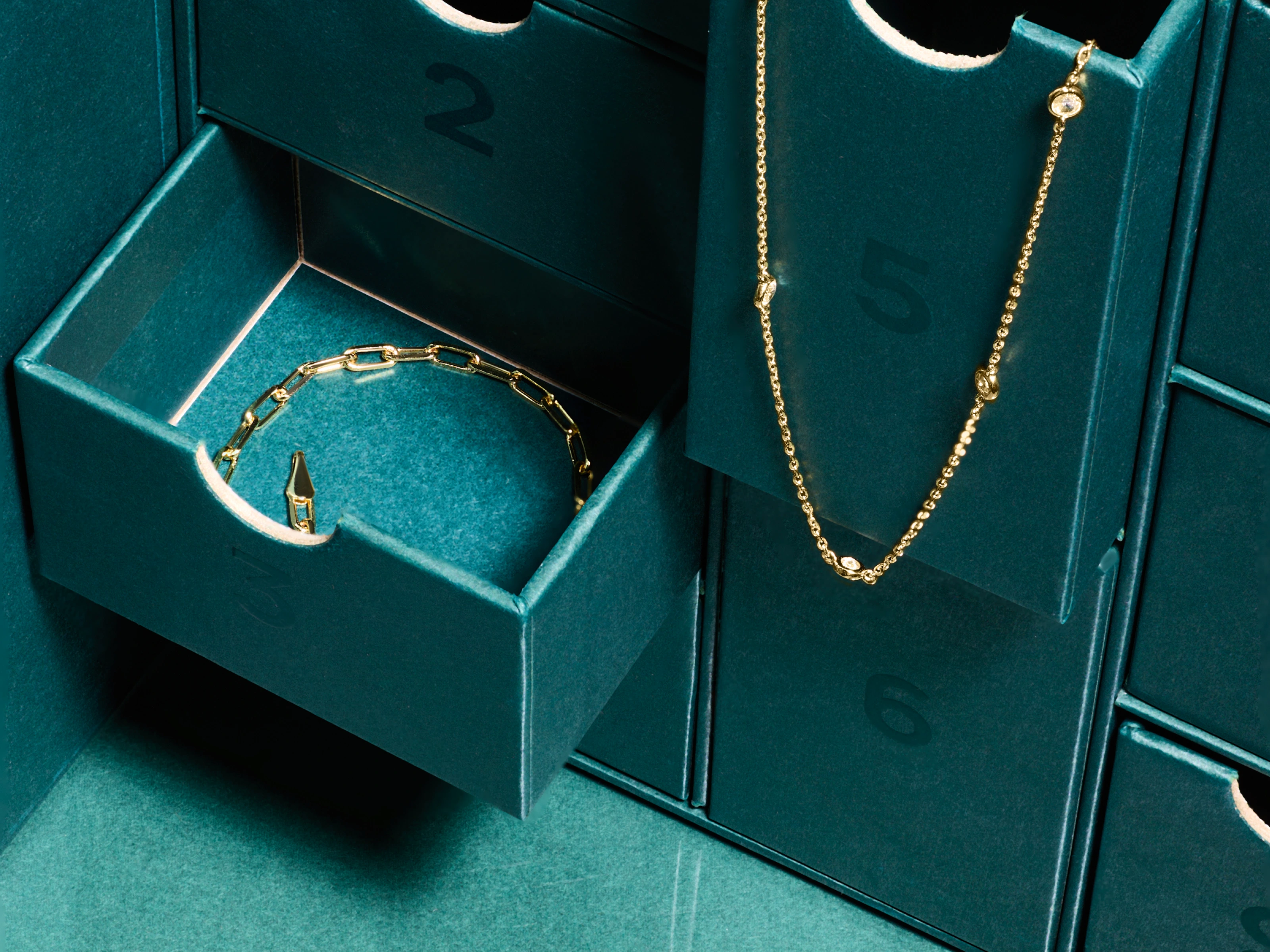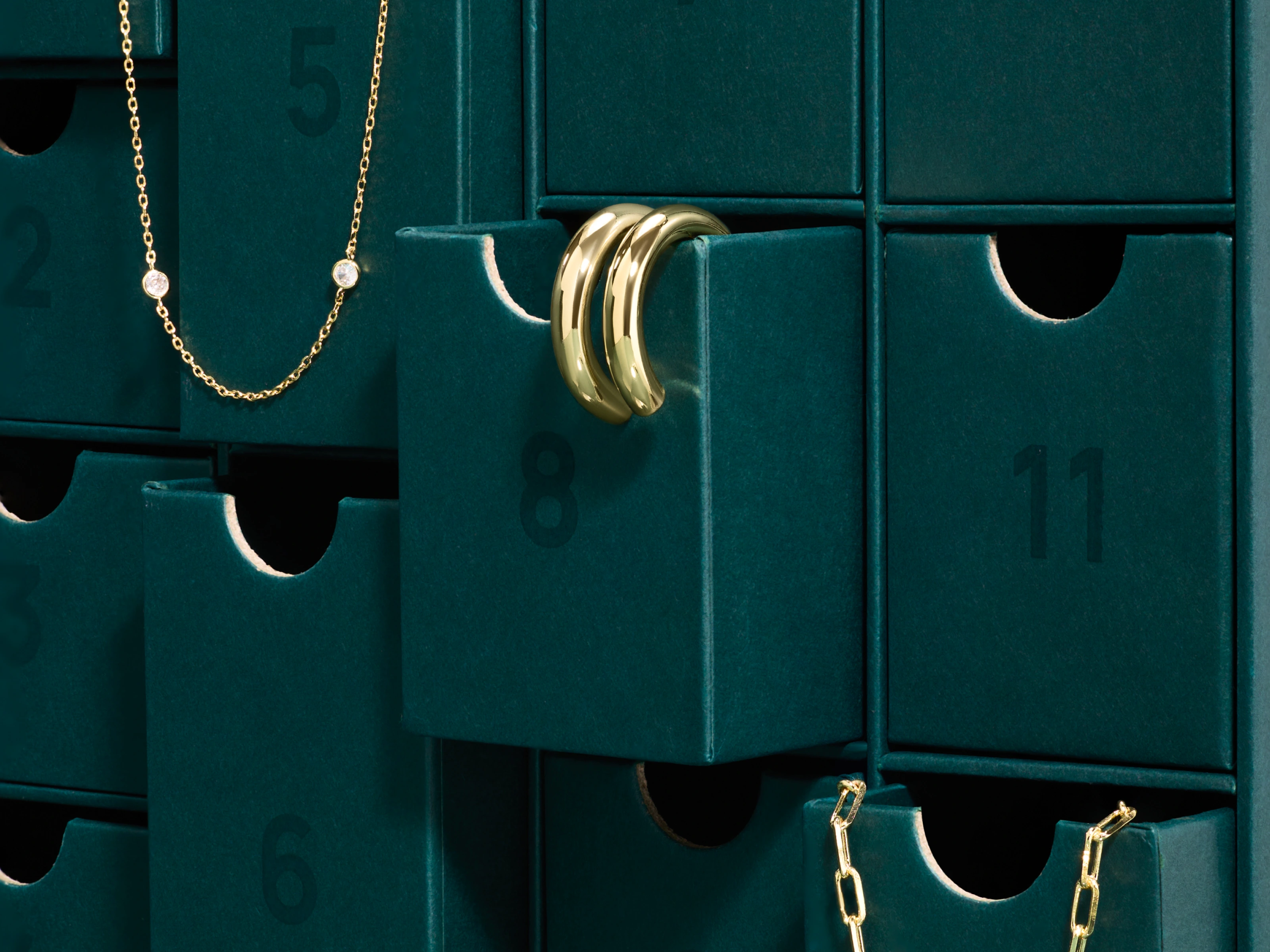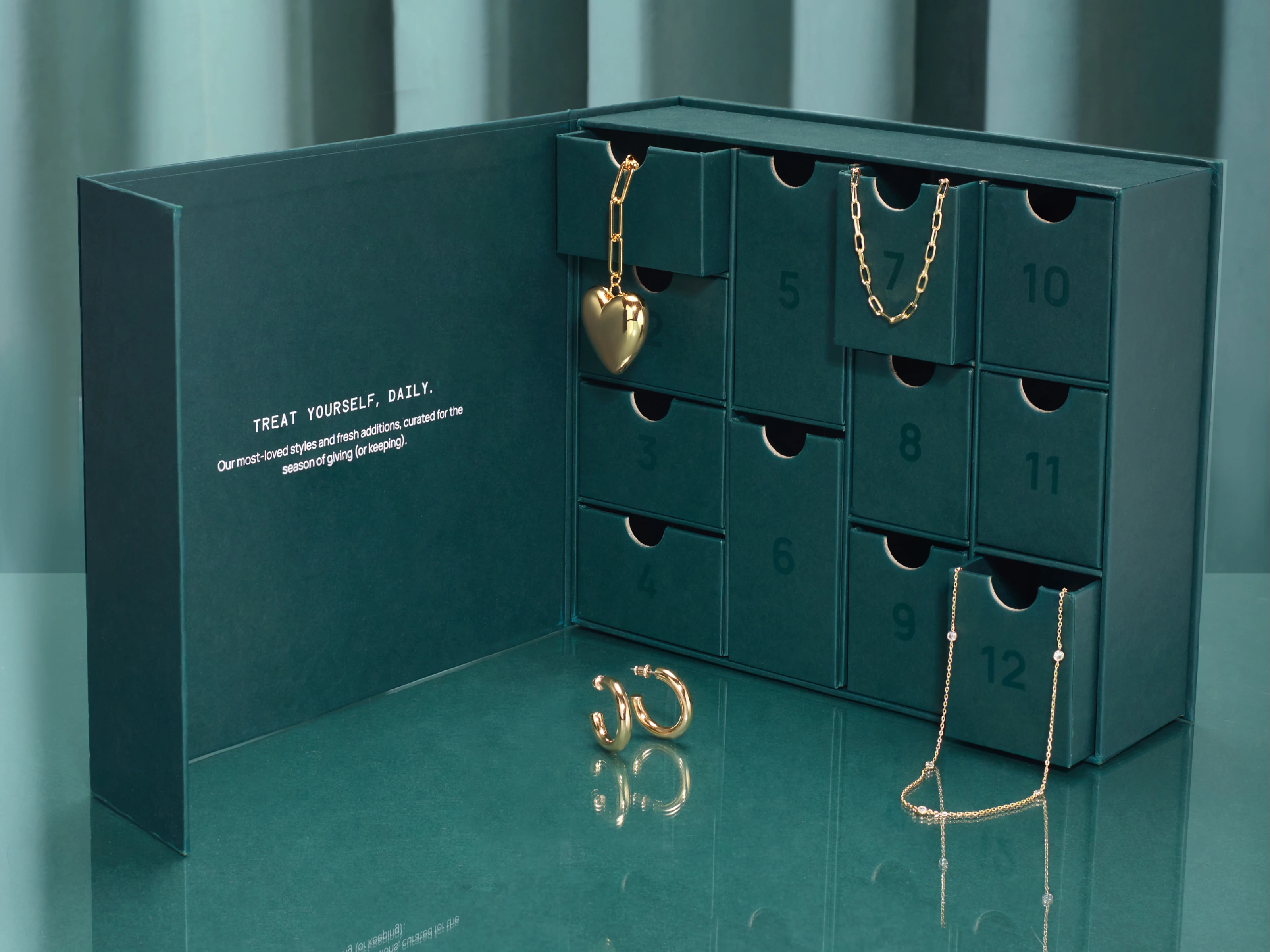 Sleek custom jewelry packaging/advent calendar design for PAVOI's DTC and TikTok channels.