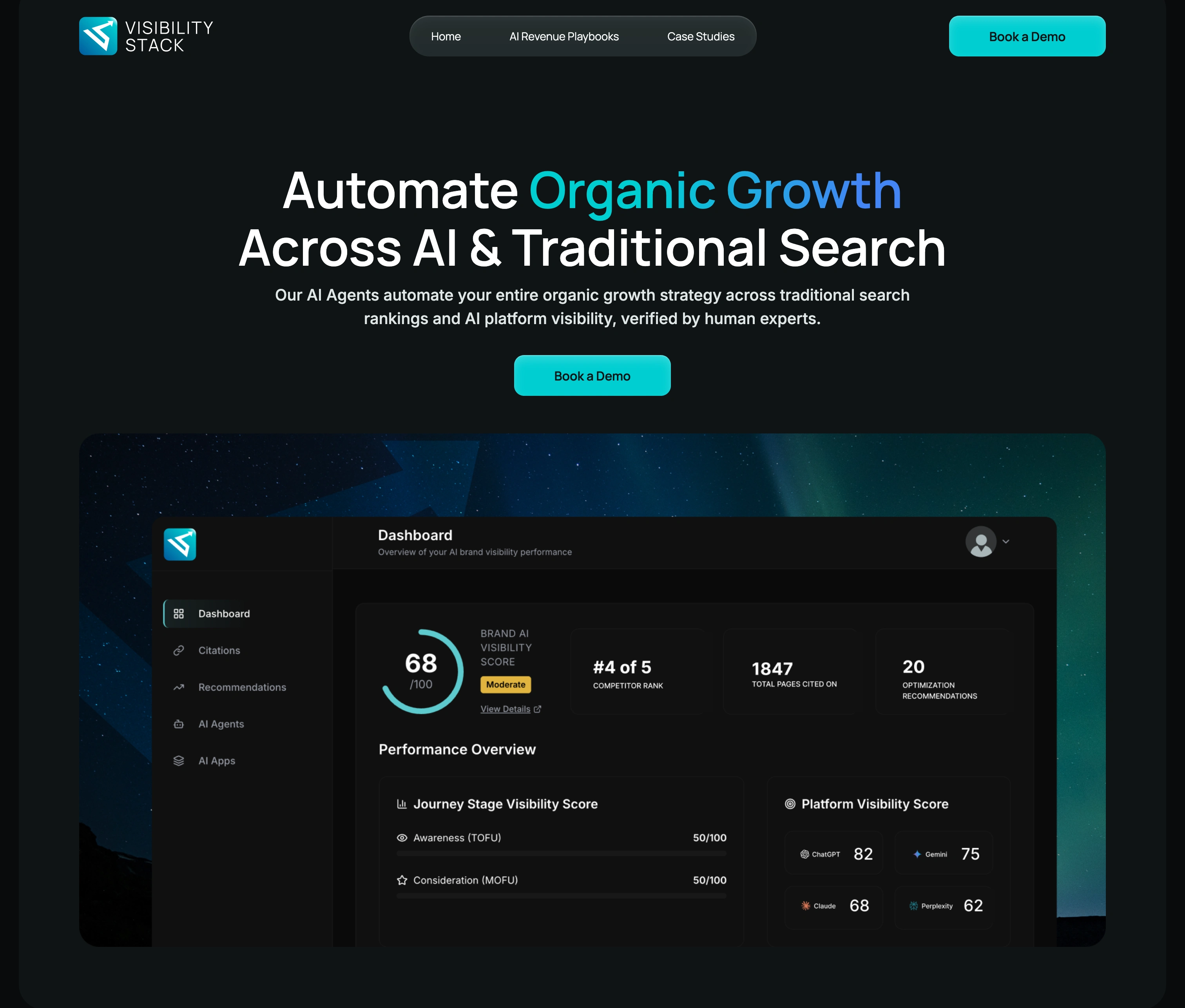 VisibilityStack tracks how brands appear in AI search results across ChatGPT, Claude, Gemini, and Perplexity. Marketing teams use it to see when (and whether) AI recommends them over competitors.