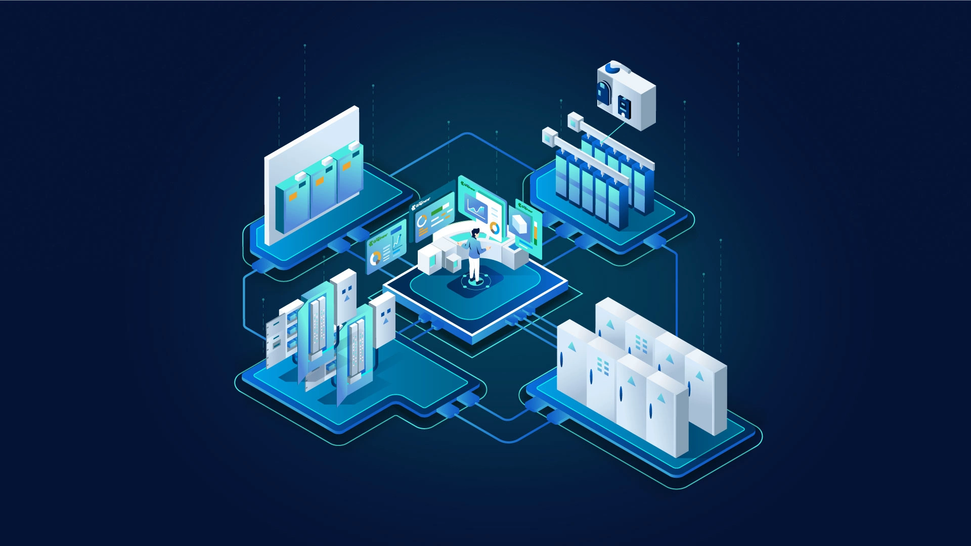 This illustration captures a datacenter not just as a place, but as a living network—modular, responsive, and endlessly interconnected. Cool tones and geometric precision evoke a sense of control and clarity, while the layered platforms suggest depth, scalability, and constant evolution.
