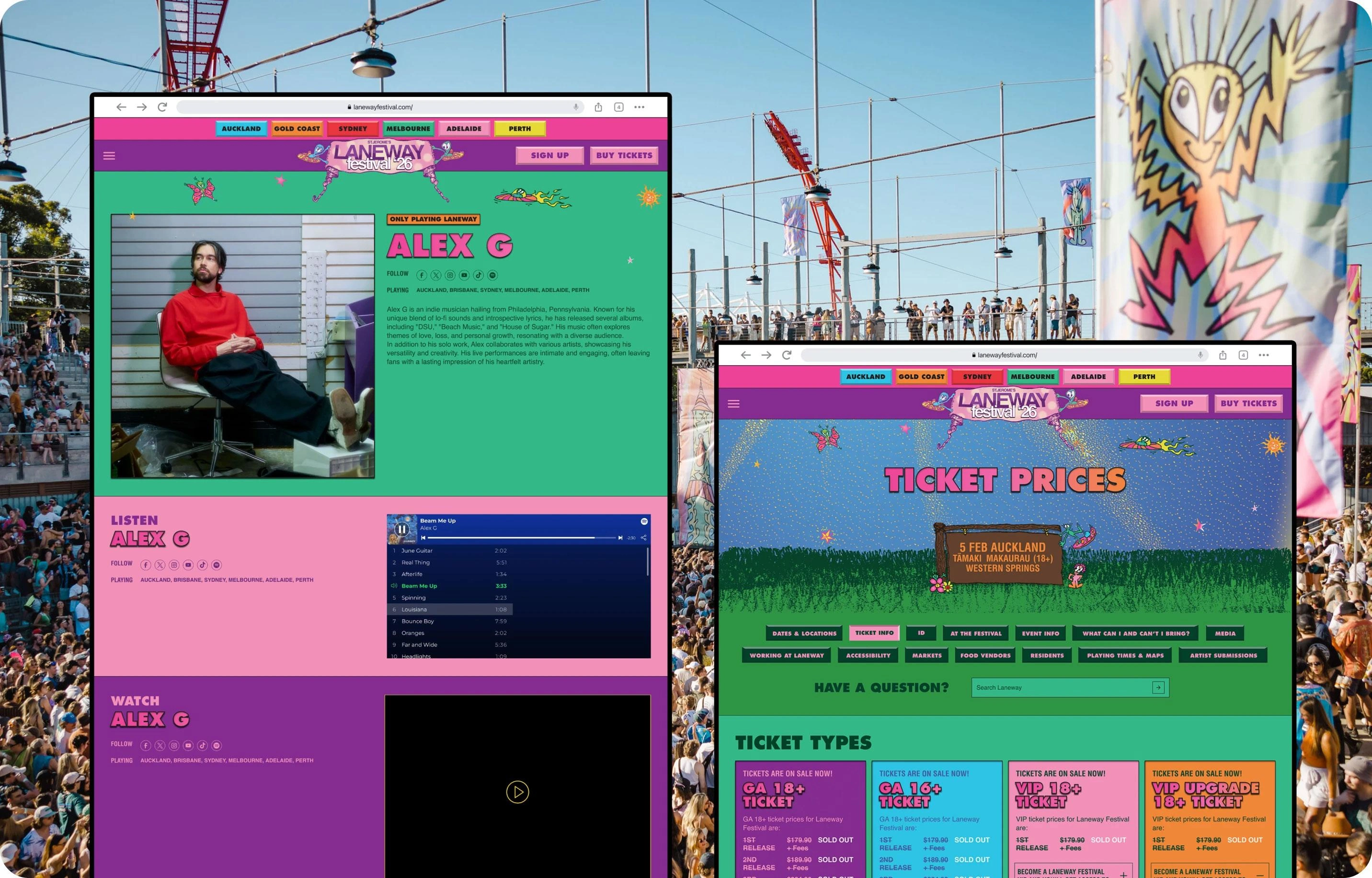 Redesign and rebuild of the St Jerome’s Laneway Festival website, spanning multiple cities and a large content ecosystem.