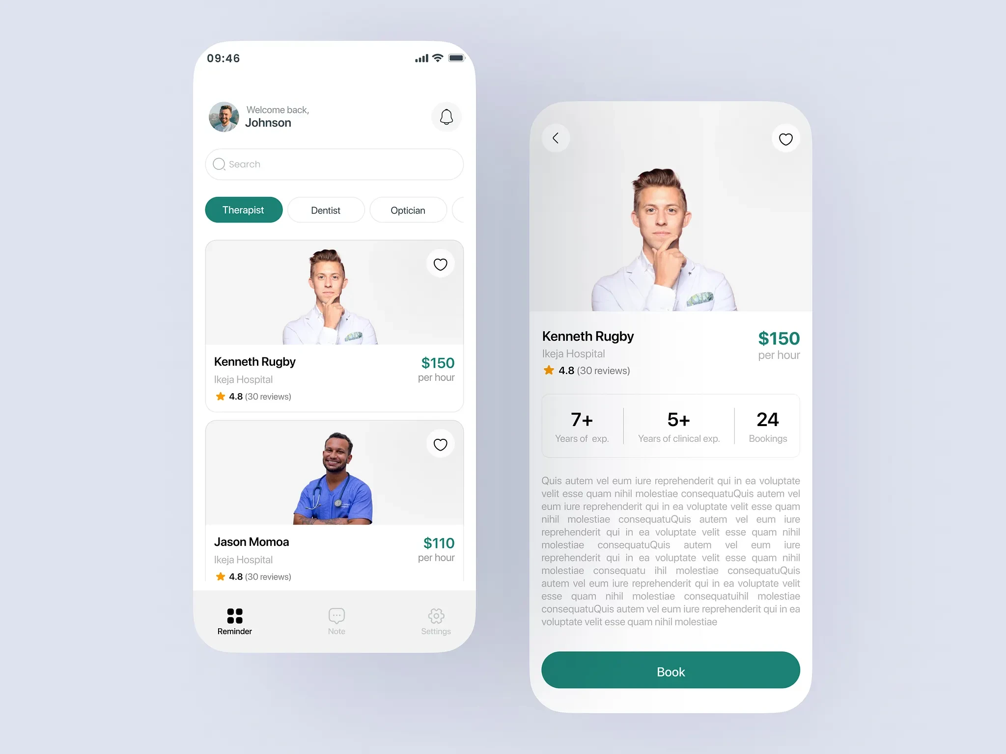 This is a clean, user-first mobile booking platform aimed at connecting patients with health professionals quickly and intuitively. The design focuses on streamlining the booking workflow, making appointment scheduling, doctor selection, and user onboarding feel effortless, modern, and human-centered.