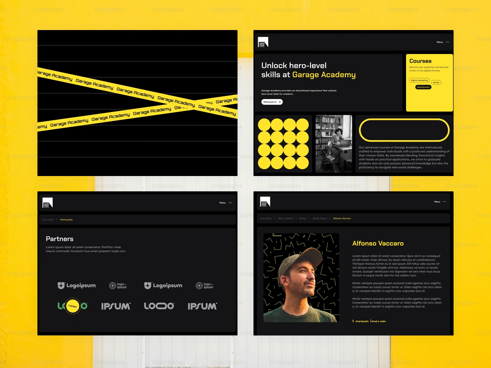 Designed a playful and experimental grid layout that highlights courses and content visually. The interface emphasizes creativity while keeping navigation simple, using colors chosen by the academy.