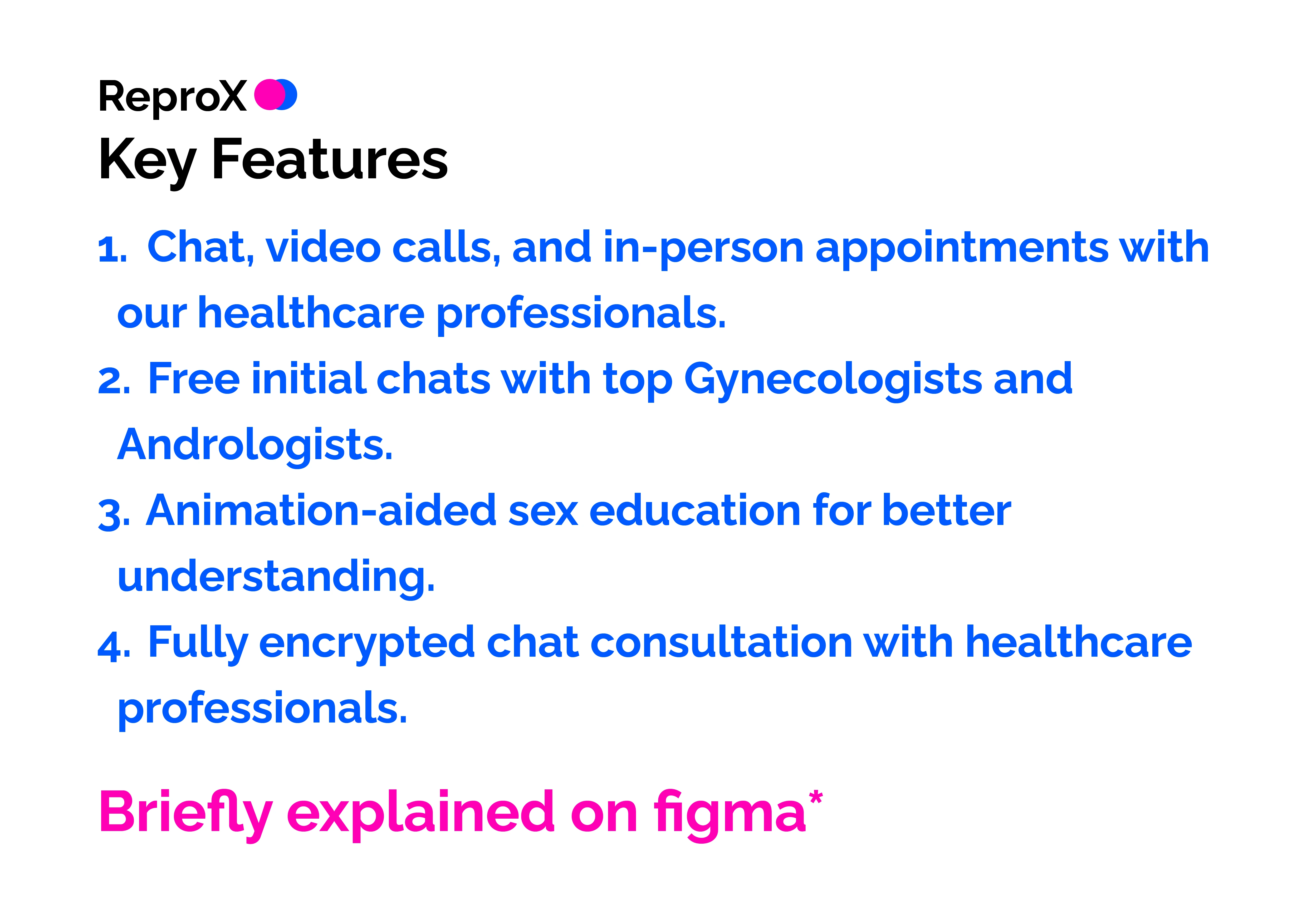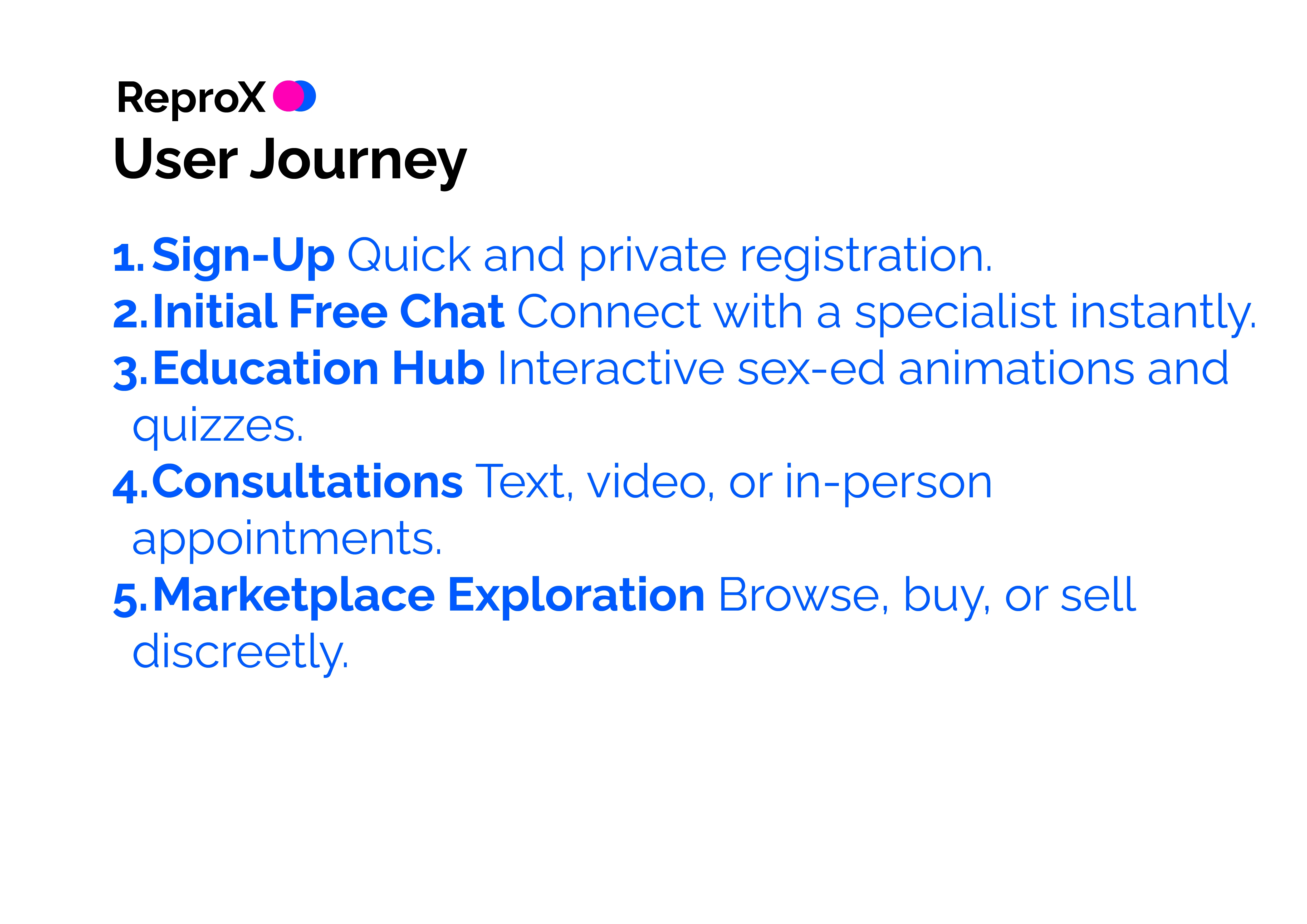 UI/UX for Reprox, a reproductive health app. Focused on intuitive navigation, user empathy, and clean design to support accessible, informed health choices.