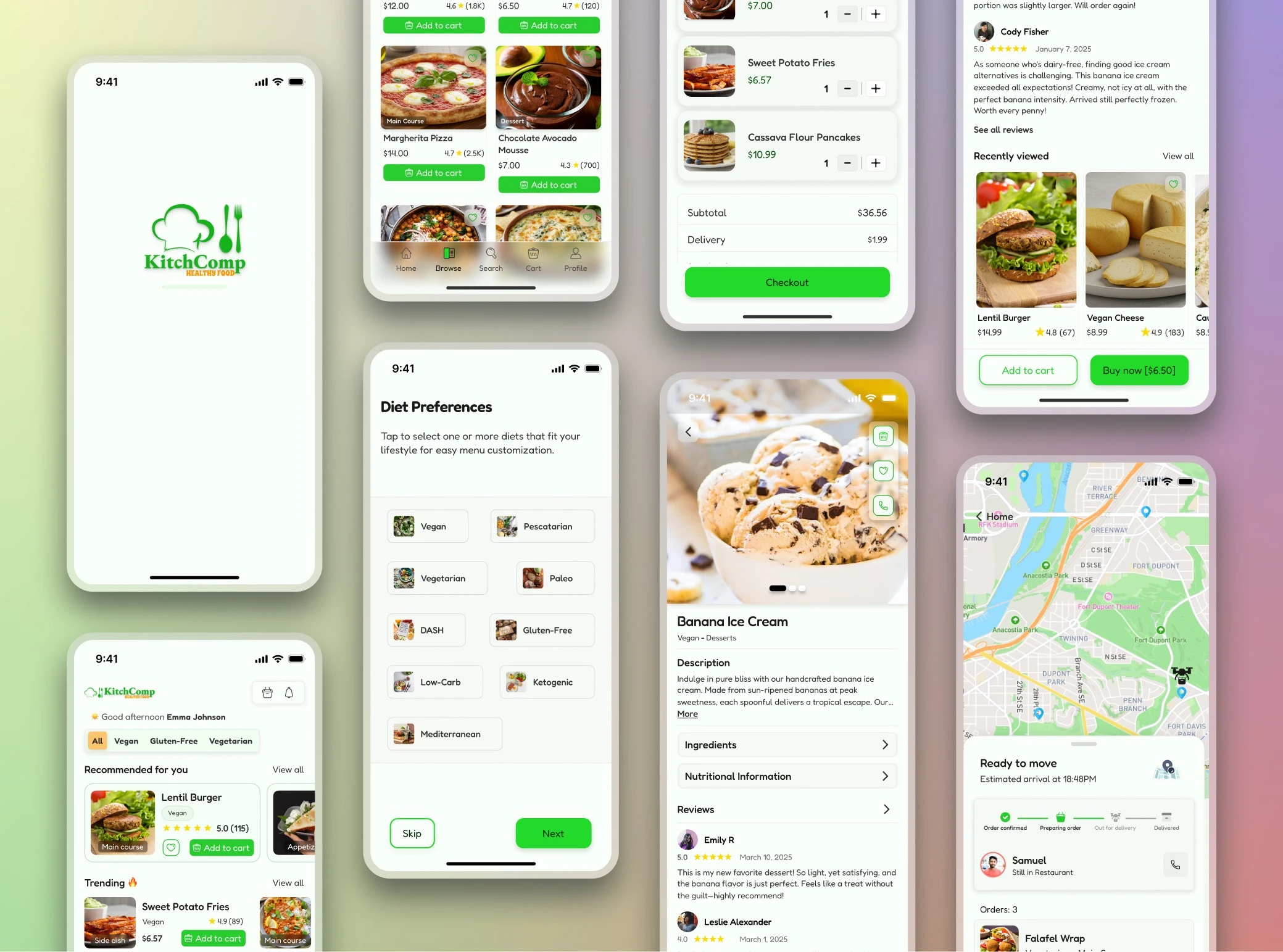 Despite the abundance of food delivery apps on the market, busy professionals still struggle with overly complex interfaces (especially menus), limited payment options, and poor customization features. Kitchcomp is designed to solve these issues by offering a seamless, user-friendly mobile app experience focused on speed, flexibility, and personalization that puts user needs first.
