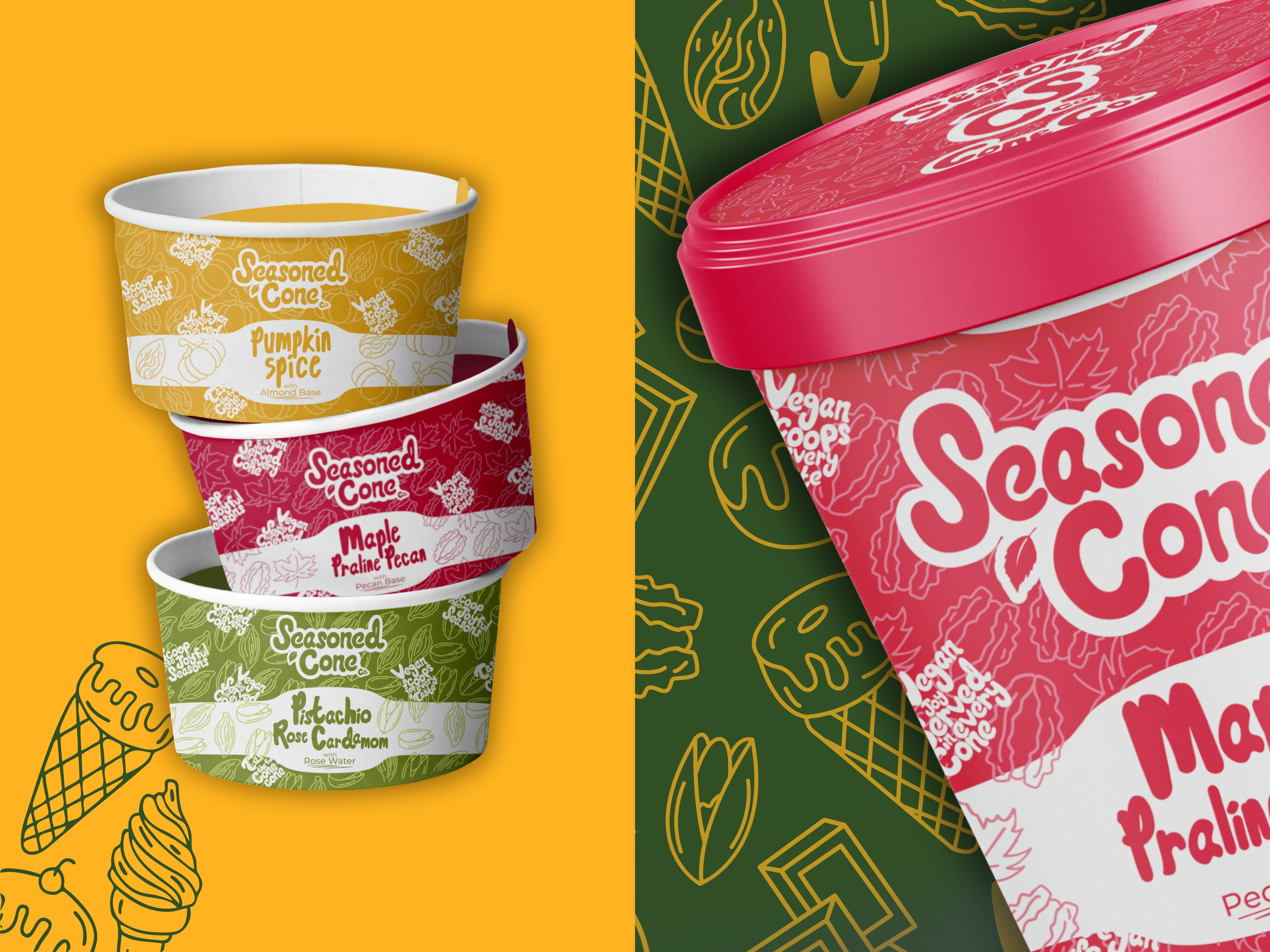 Seasoned Cone Co. is a vegan ice cream brand with a sustainable design, reflecting its values in every aspect.