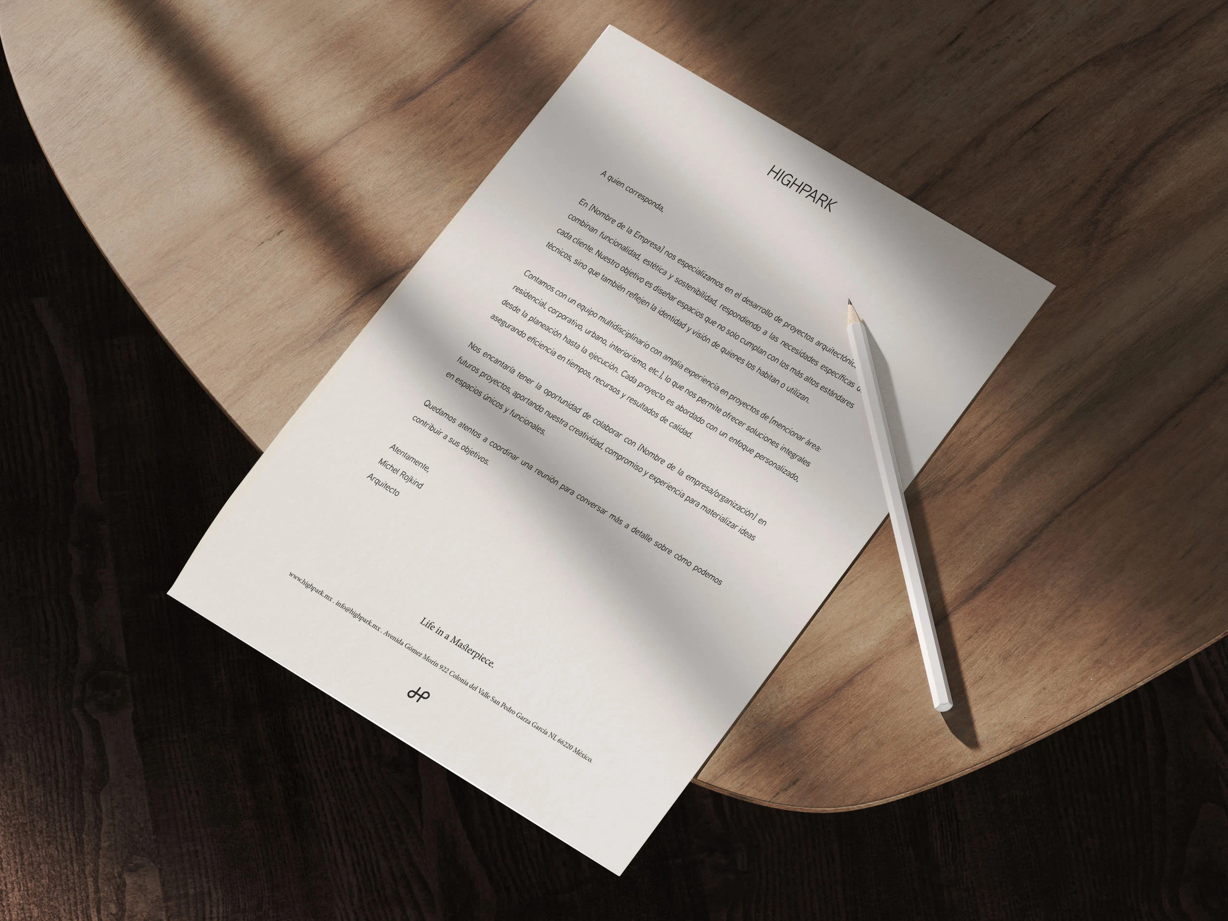 An minimalist brand identity for Highpark, the iconic Rojkind Architects residential development, capturing the essence of its organic architectural vision.