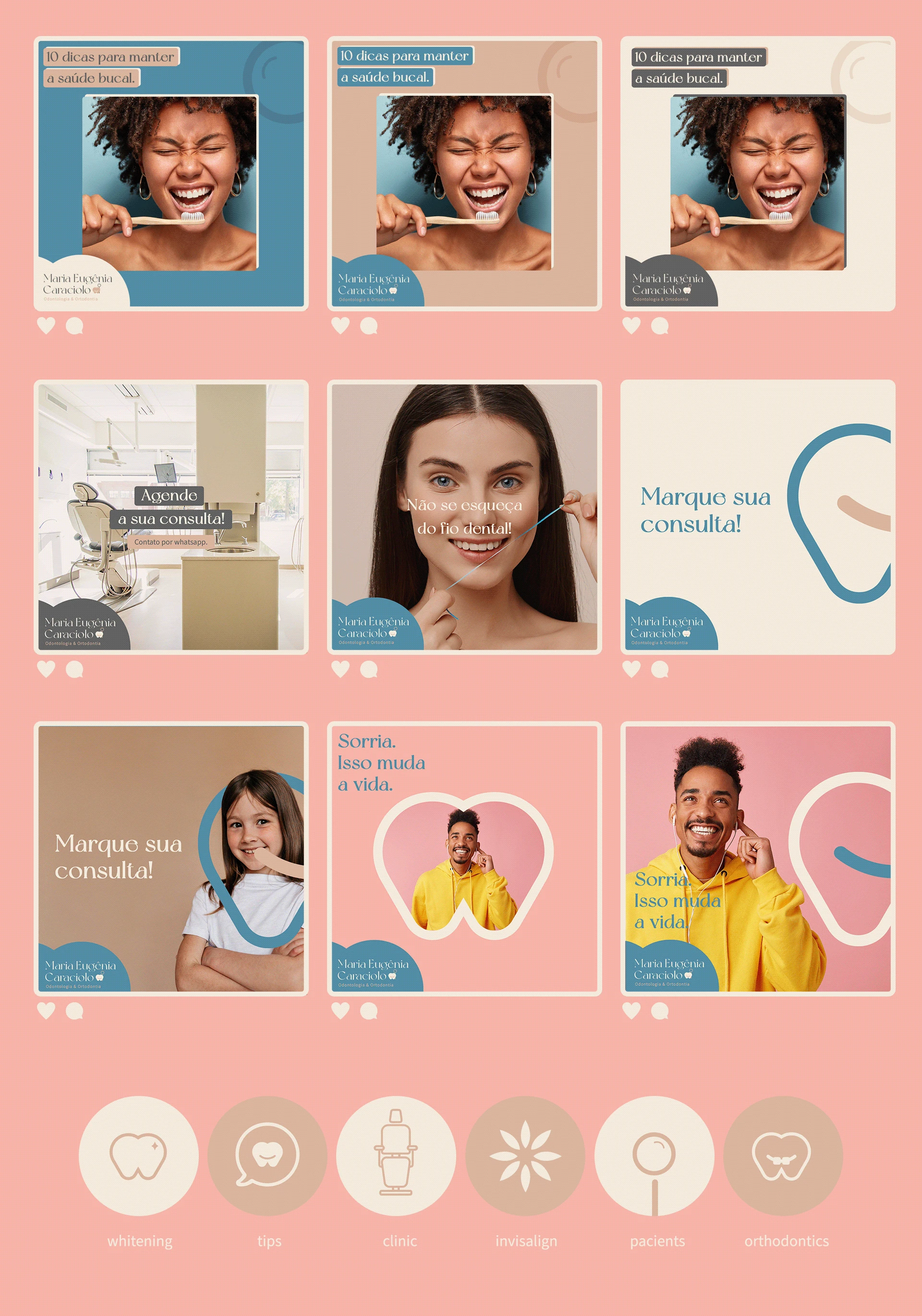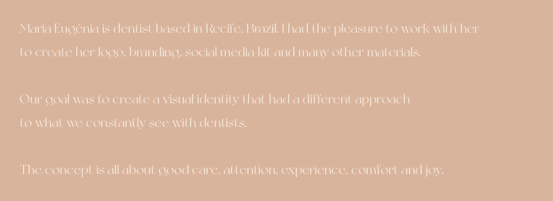 Maria Eugênia is a dentist based in Recife, Brazil. I worked with her to create her new branding. The concept is all about good care, attention, experience,