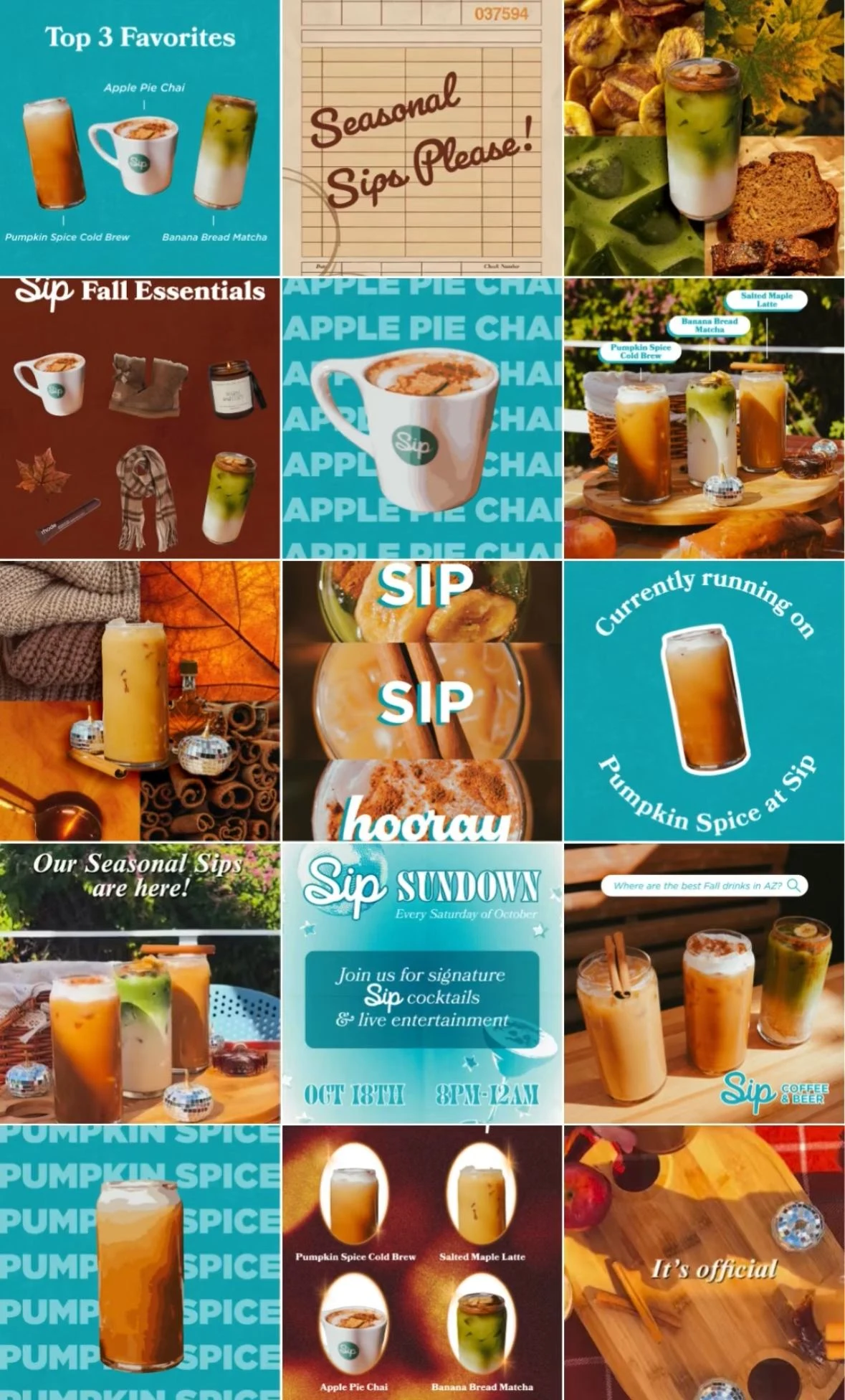 The following case study shows a feed preview of 2-months worth of seasonal content drafted from a singular photoshoot.