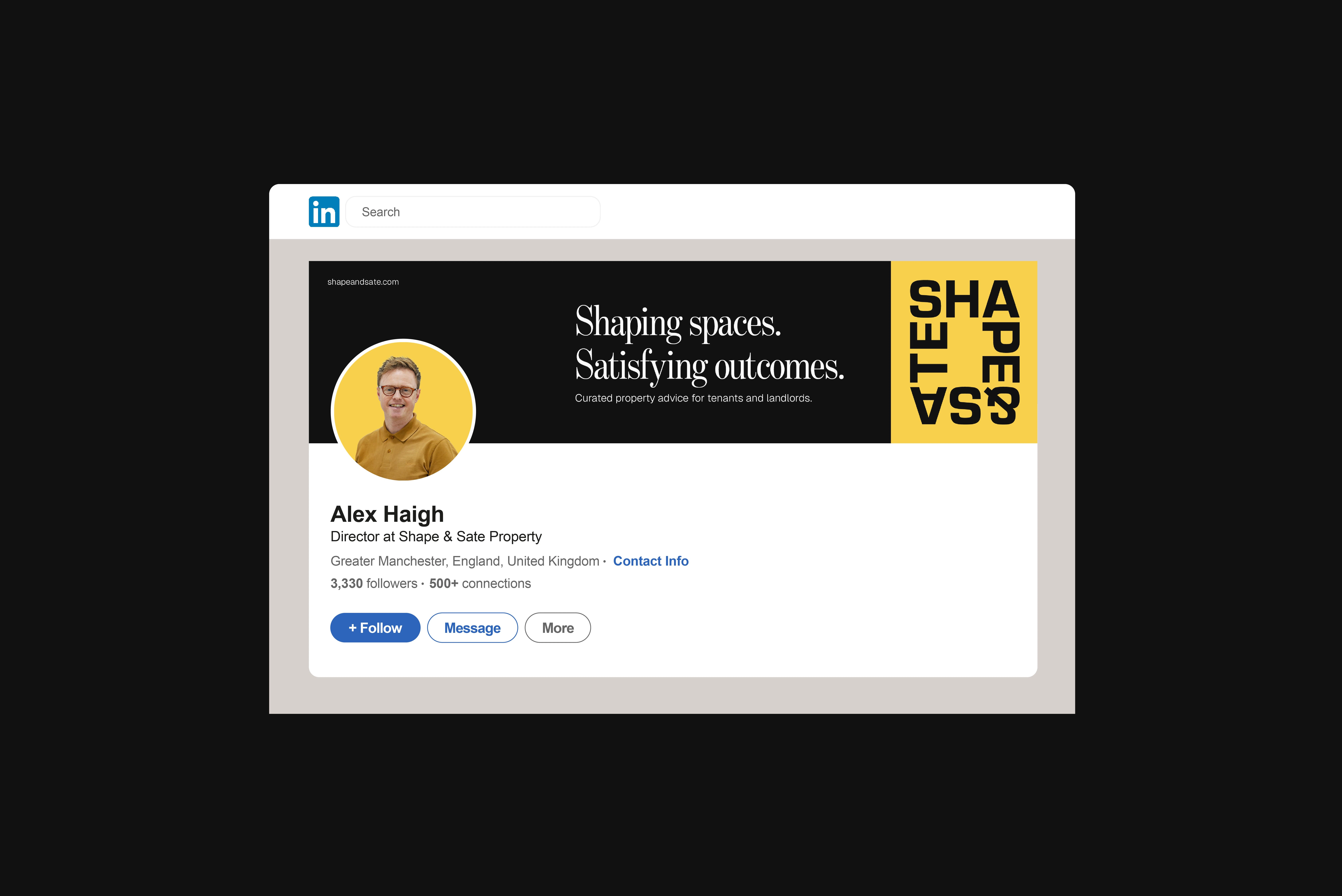 The visual identity centres on a bold typographic wordmark that works in isolation and as a secondary frame across all brand assets, brought to life through motion. A vibrant five-colour palette that stands apart from every other competitor in the space, and a design system comprehensive enough to take Shape & Sate from socials to marketing boards on the streets of Manchester and beyond.