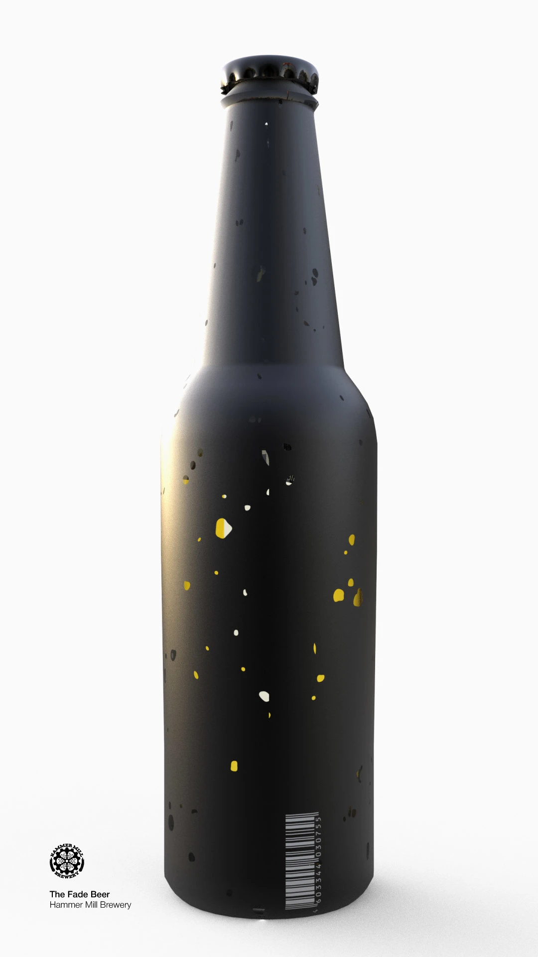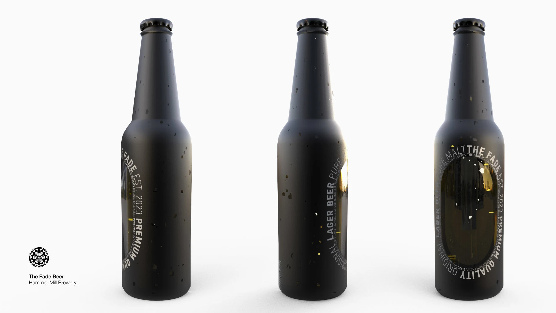 I took that idea literally. A full-black coating hides everything beneath it, while natural perforations let the light bleed through, creating a subtle glow from inside the bottle. The oval cutout is a deliberate echo of iconic beer labels — Heineken and others — making the design feel instantly familiar yet radically new.