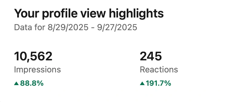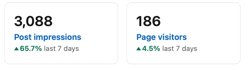 Post impressions rose 65% to exceed 3,000 views, and page visitors reached almost 200, showcasing measurable results in brand visibility.