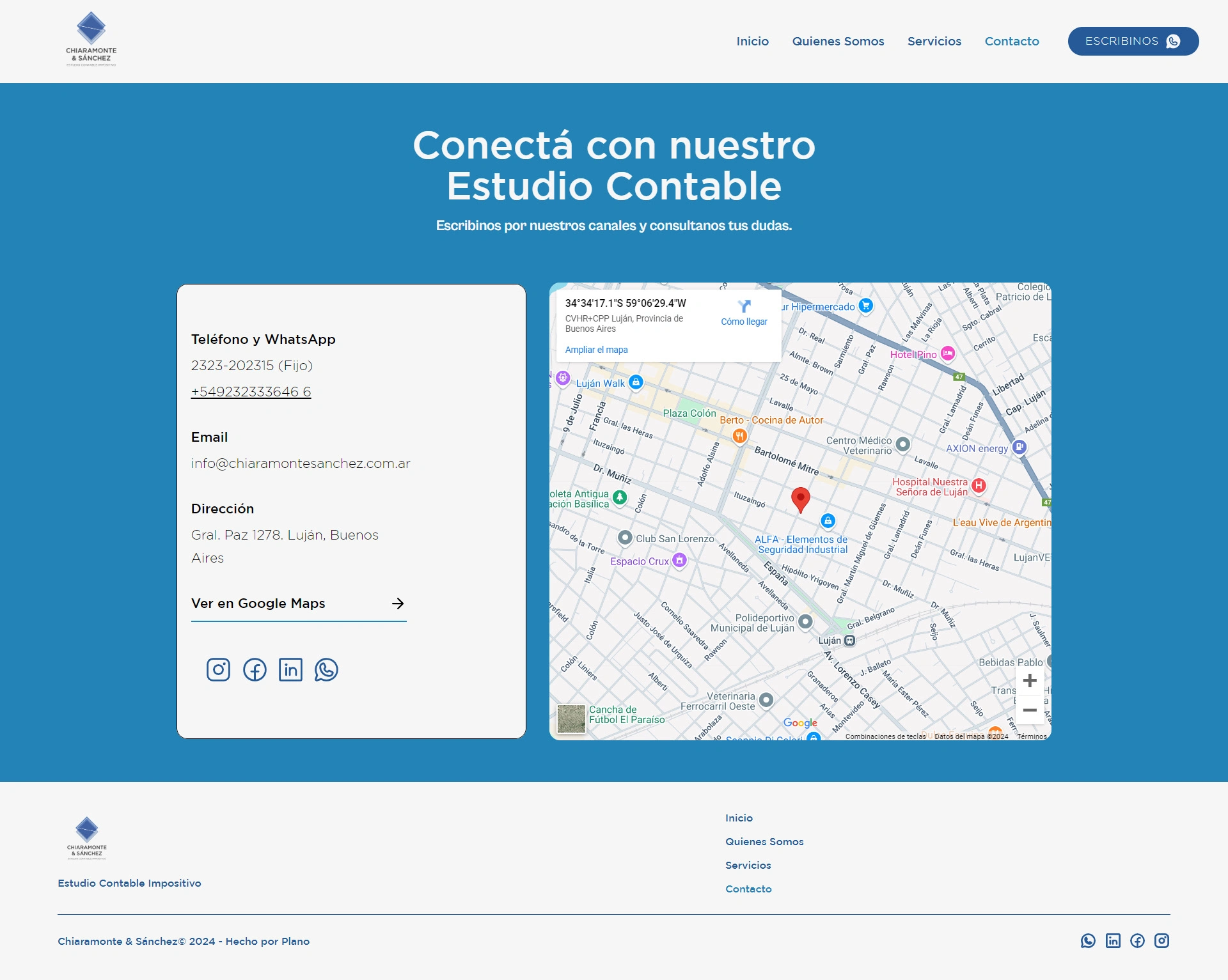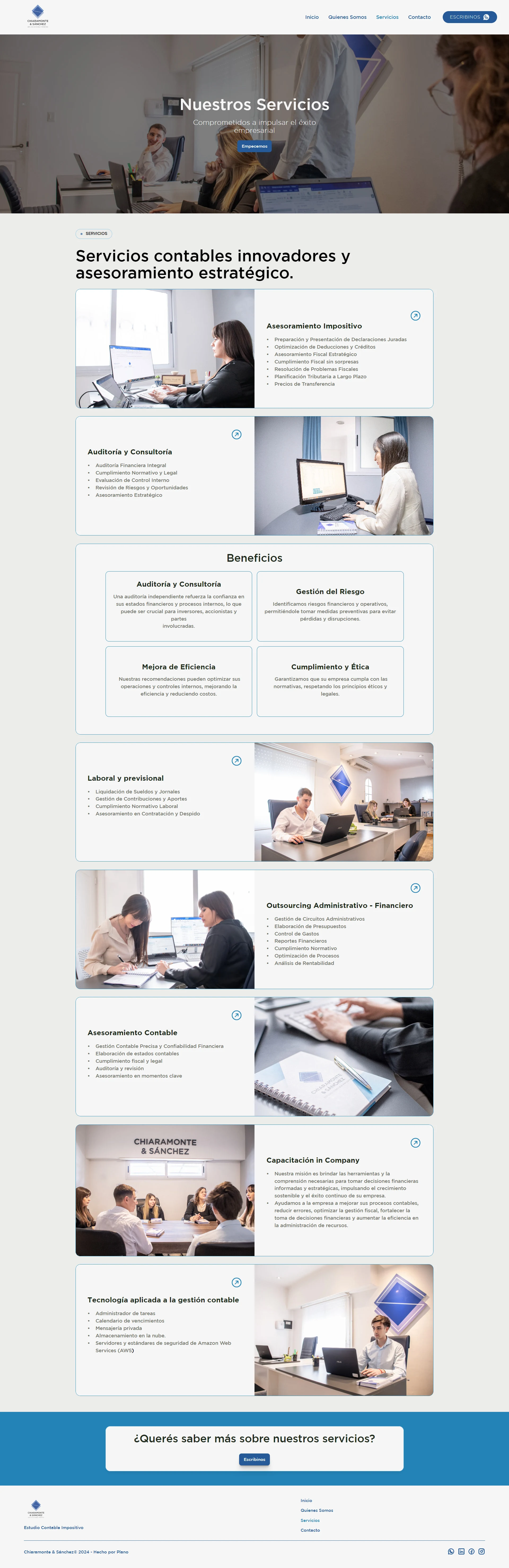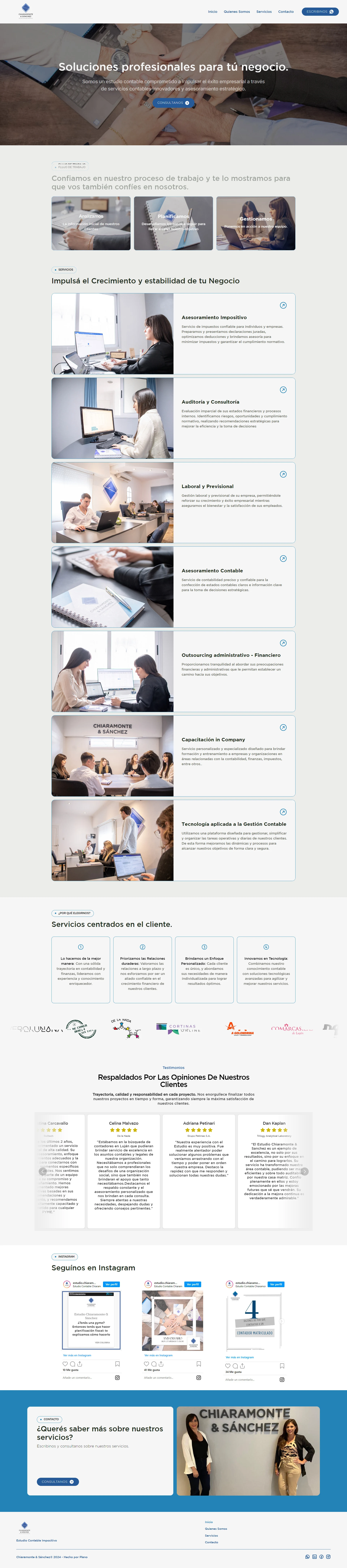 Rediseño y migración de wordpress a Framer. Estudio contable de finanzas, con sus servicios y propuesta de valor, articulando redes sociales y contacto.