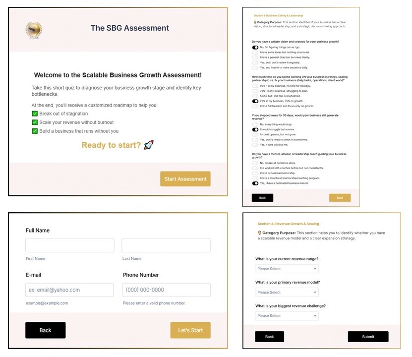 This is a Jotform based web form with automations, custom branding (CSS, HTML), workflow automation, custom PDF report, integrated with Slack and AirTable.