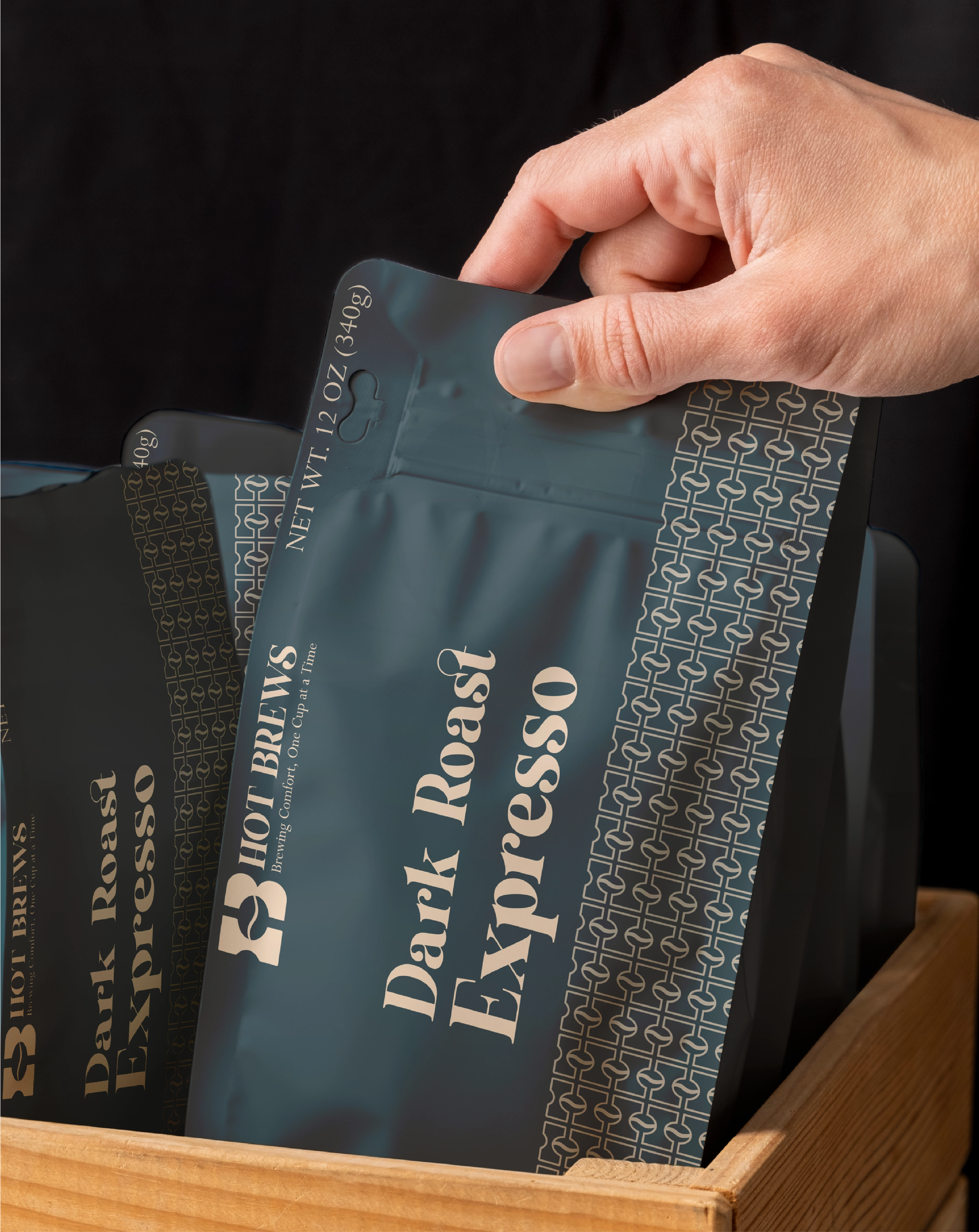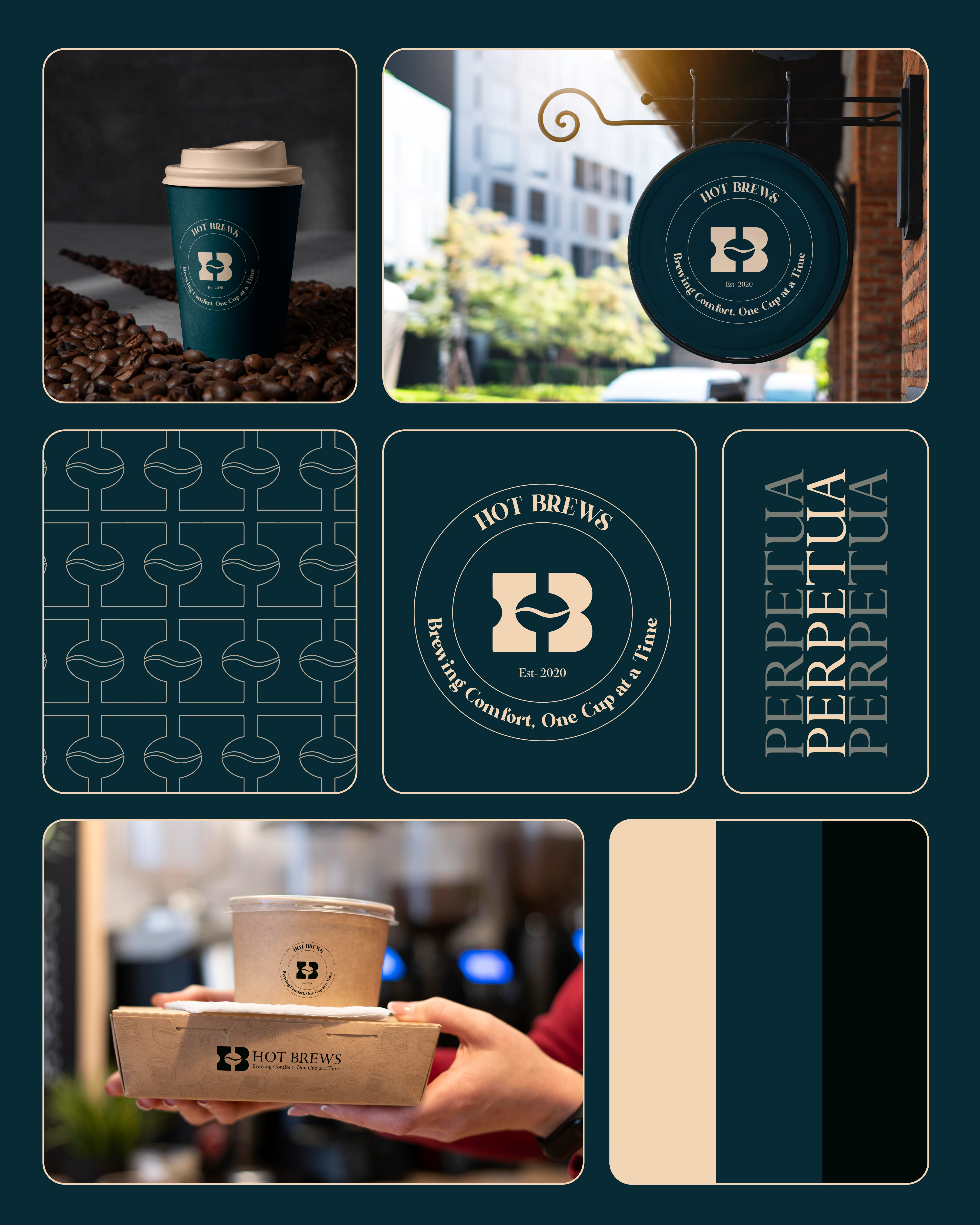 Here, I have blended the letters H + B with a coffee bean to create an emblem that embodies elegance, warmth, and a high-end café experience.