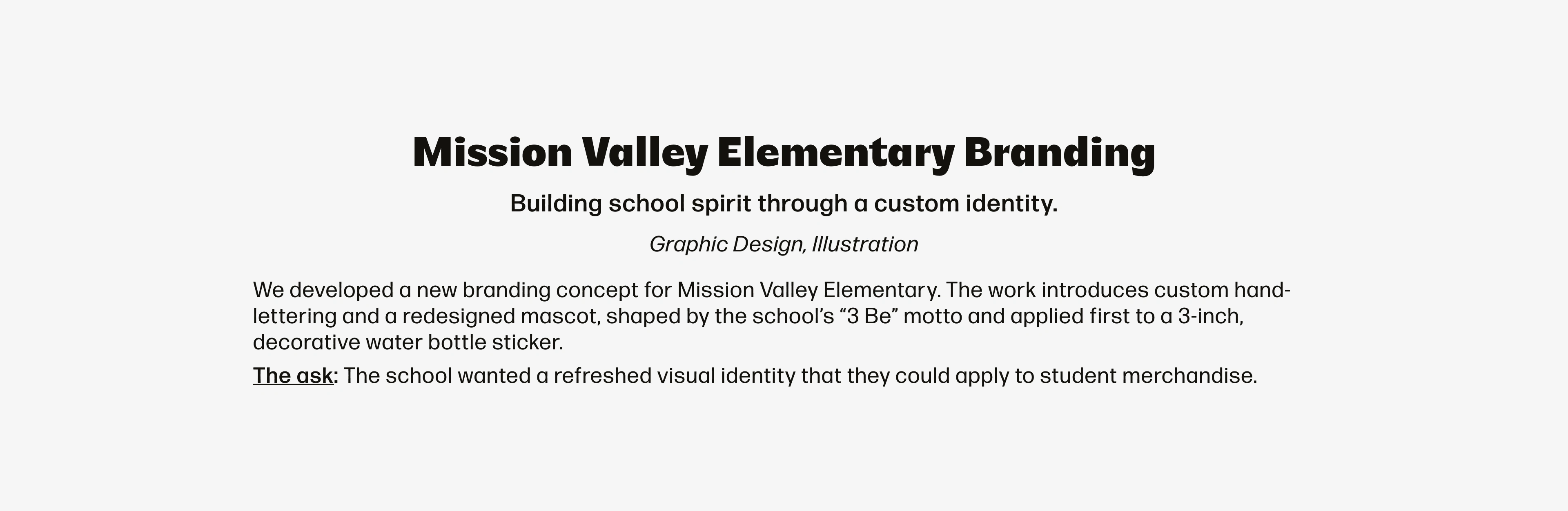 Developed a bold, fun identity for Mission Valley Elementary to use for school merchandise.