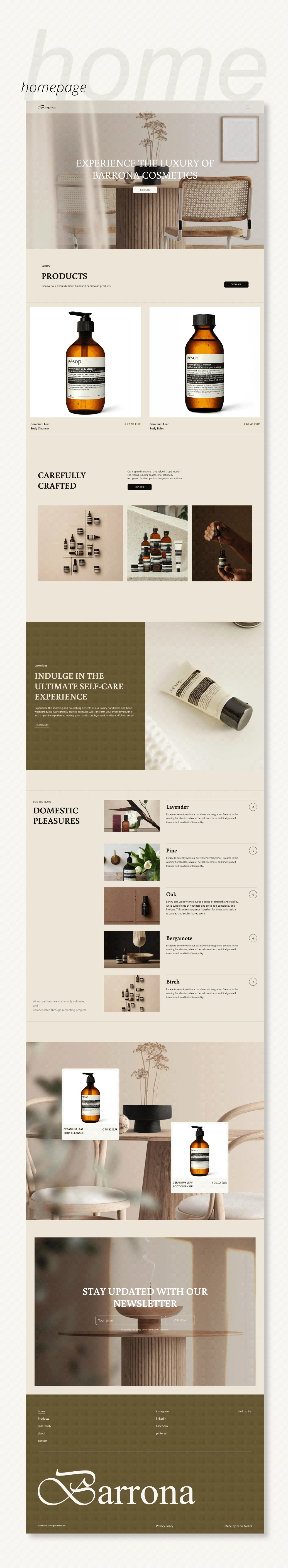 Design of a luxury e-commerce website for Barrona lotions, boosting sales with stunning product photos (taken by me) and a user-friendly experience.