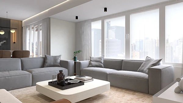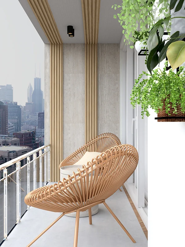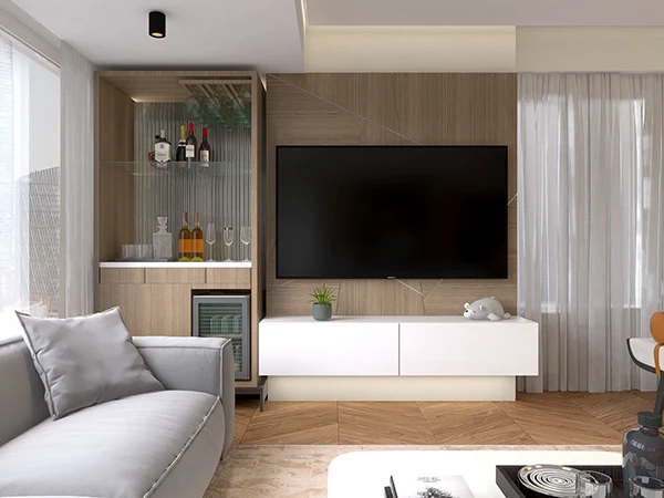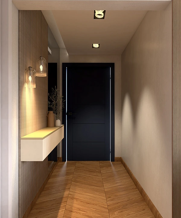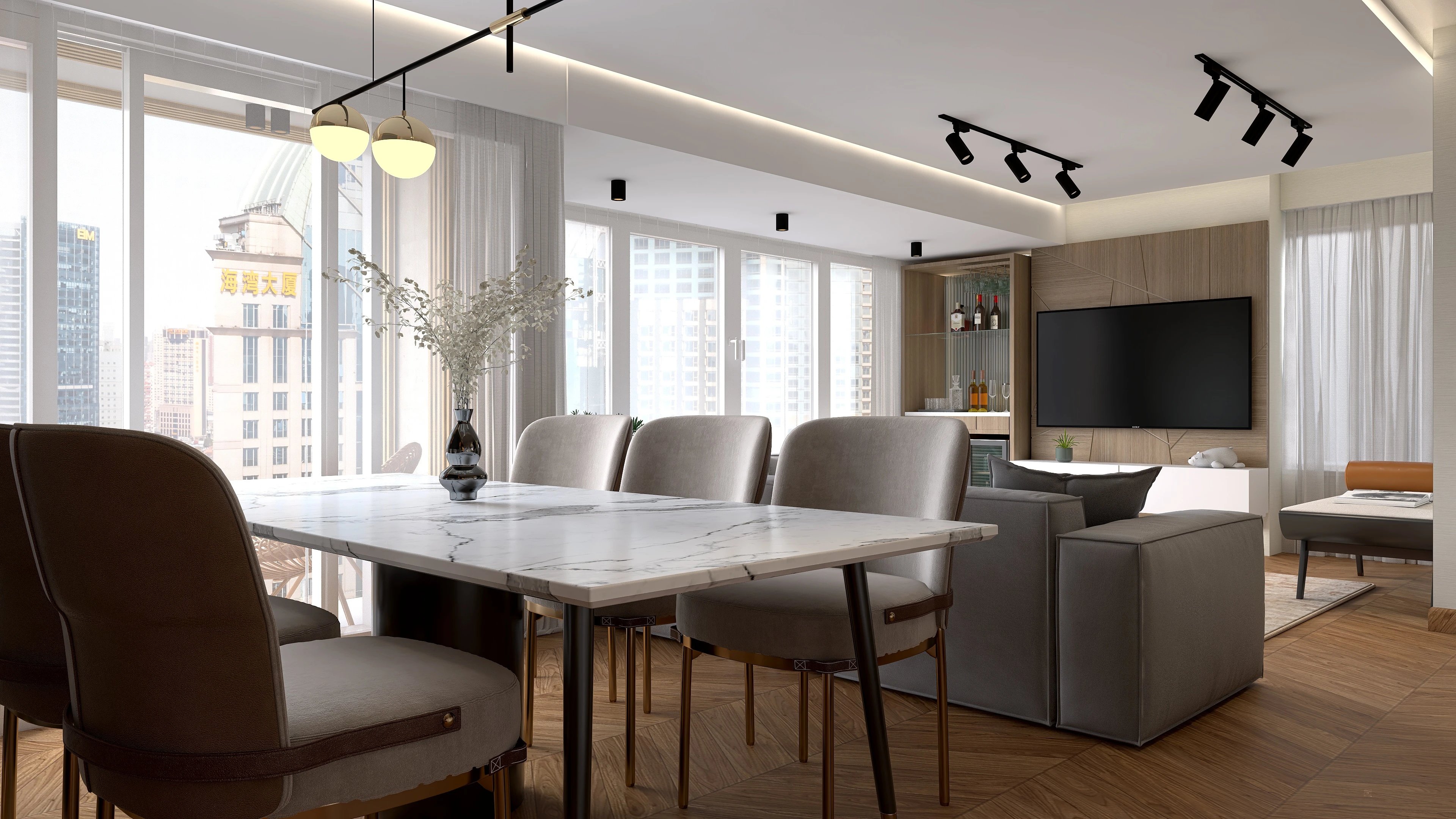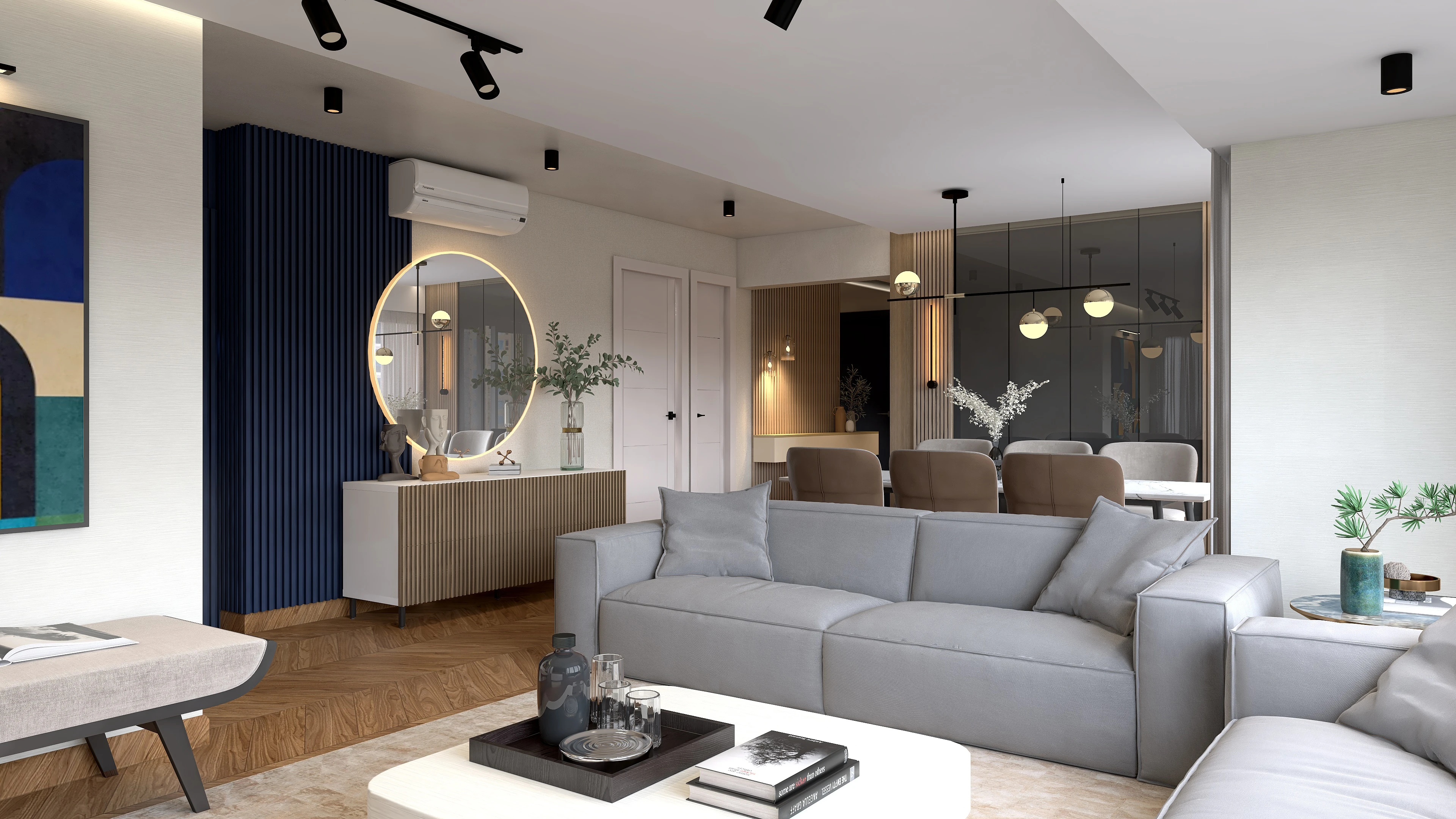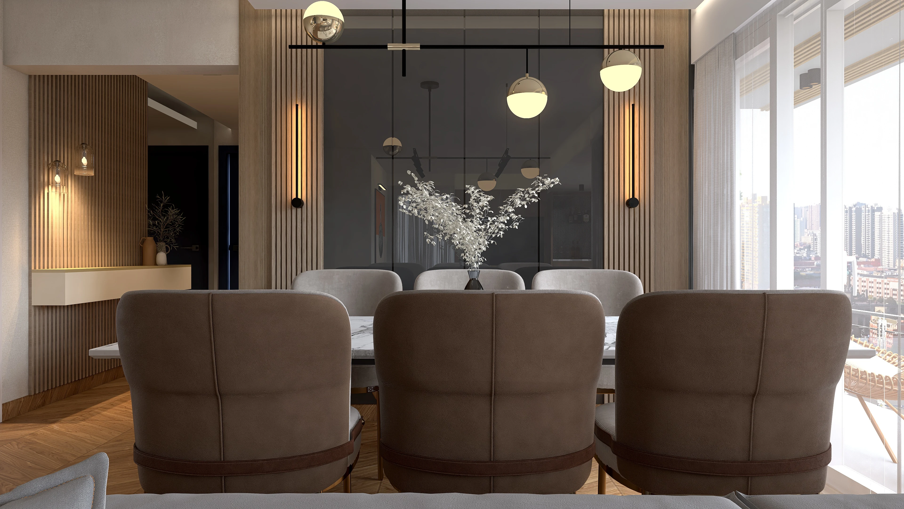 Un apartamento que busca encontrar un espacio auténtico y único con materiales naturales y tonos neutros. El objetivo principal es que el cliente sienta a gusto su espacio de entrada, sala-comedor, baño y balcon con elementos de su agrado como madera, marmol, tapices y colores neutros.