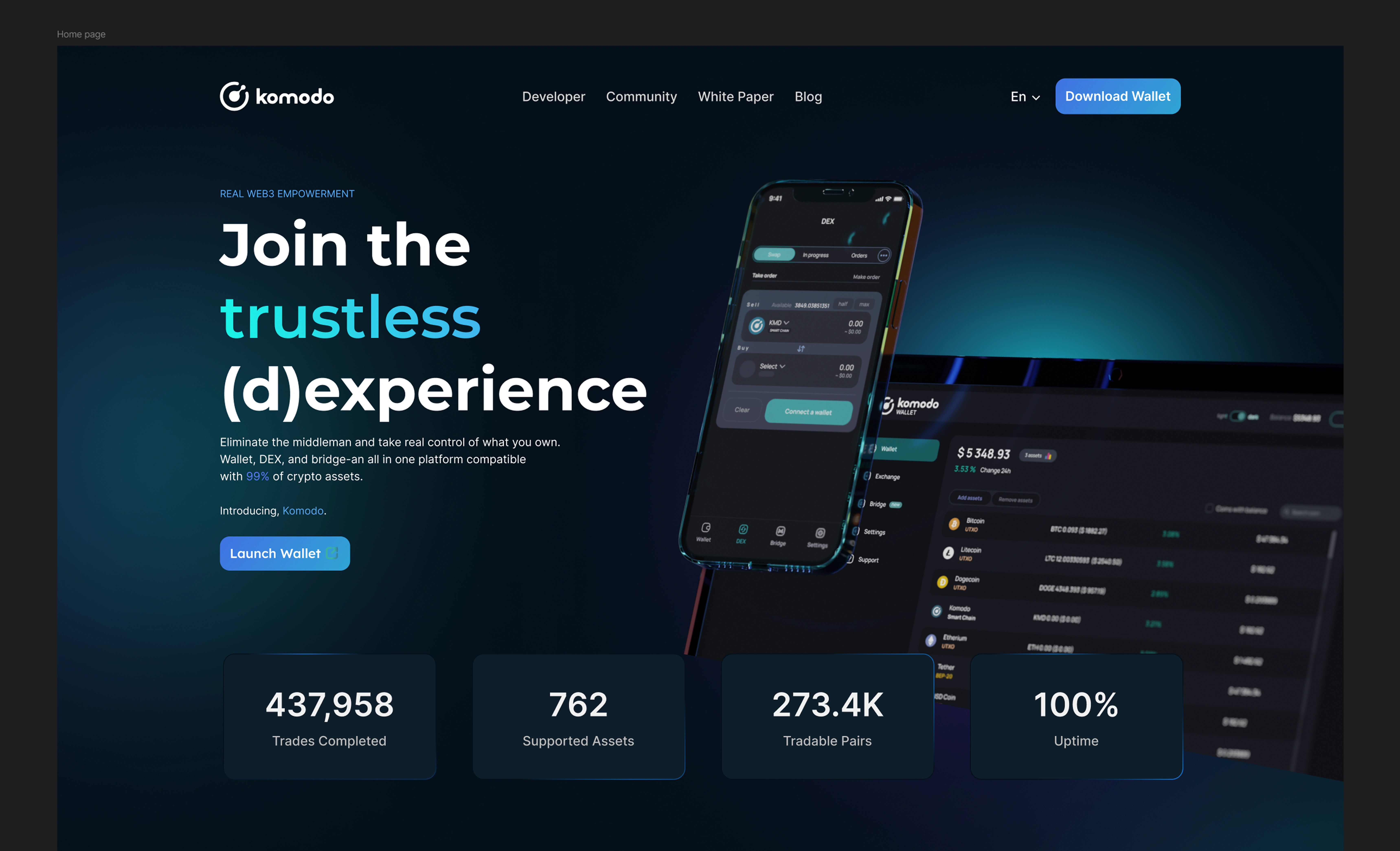 Komodo delivers a truly trustless Web3 experience combining wallet, DEX, and cross-chain trading into one secure platform. Take full control of your assets with no intermediaries and no compromises.