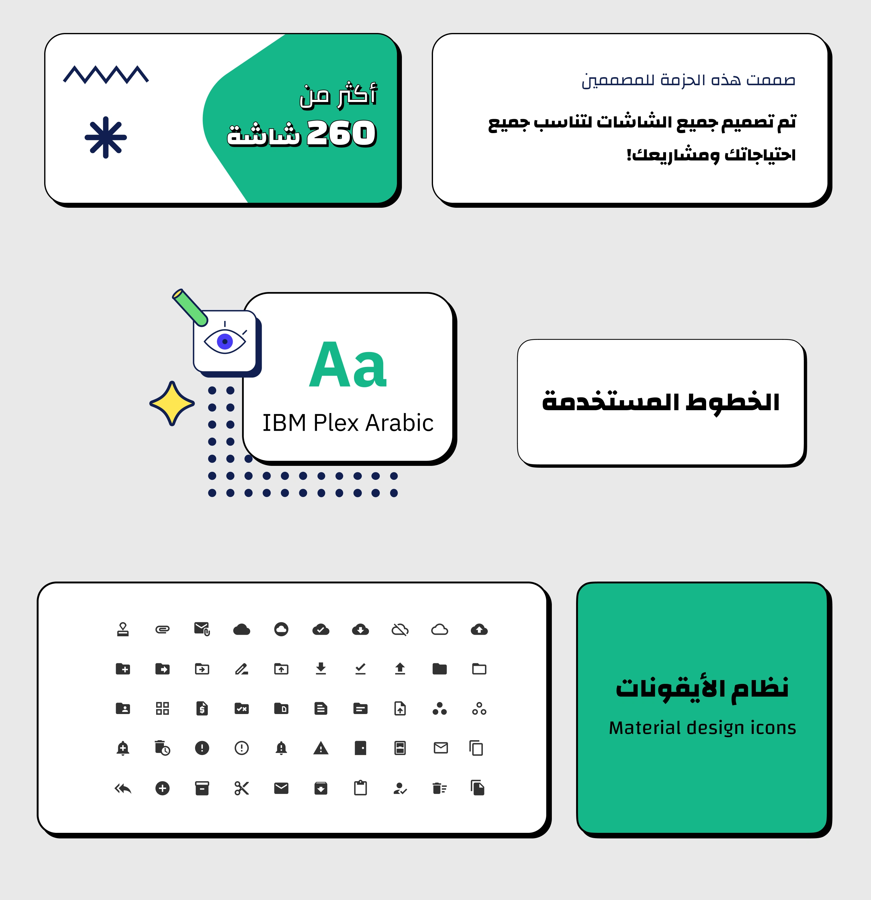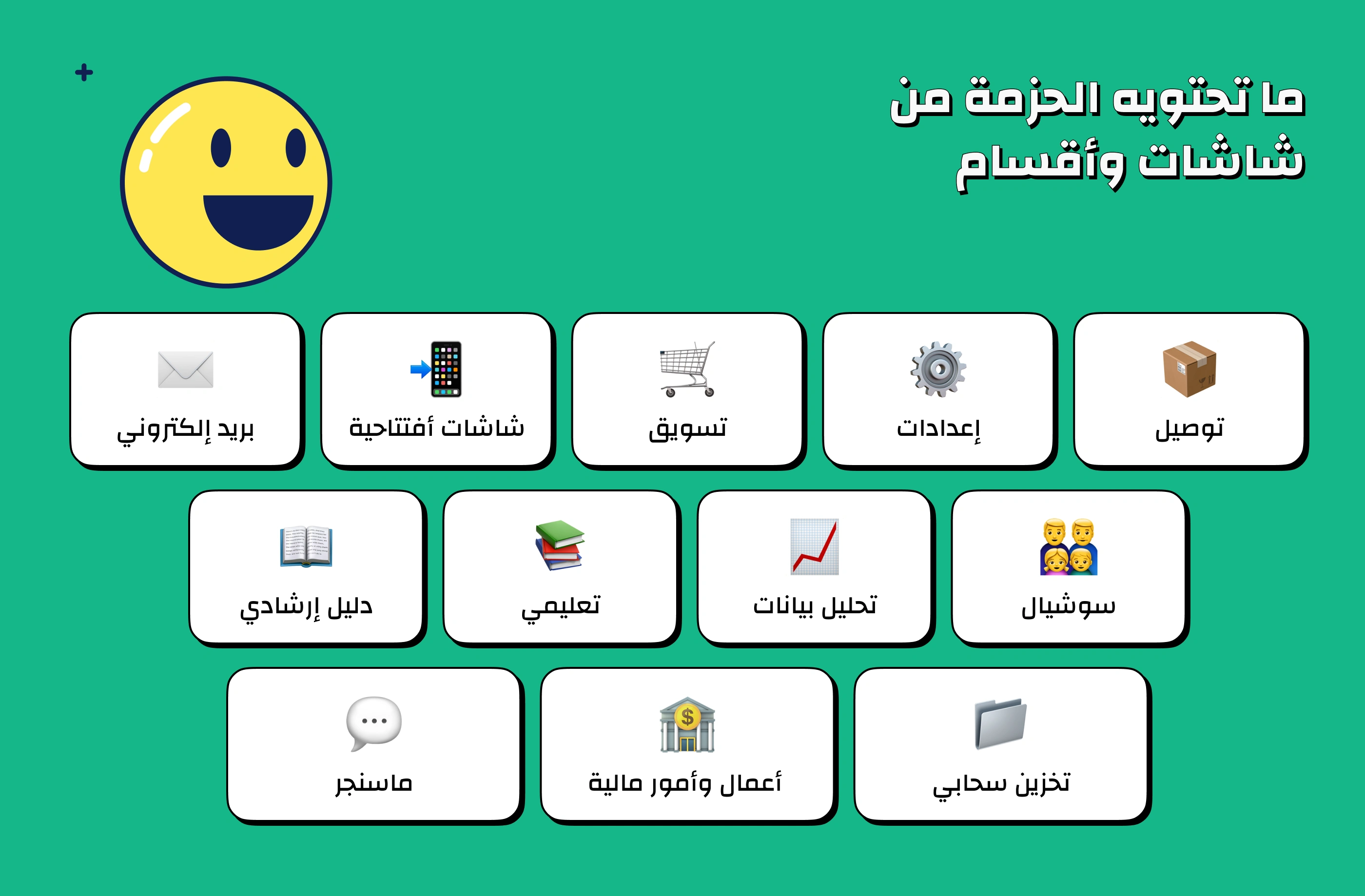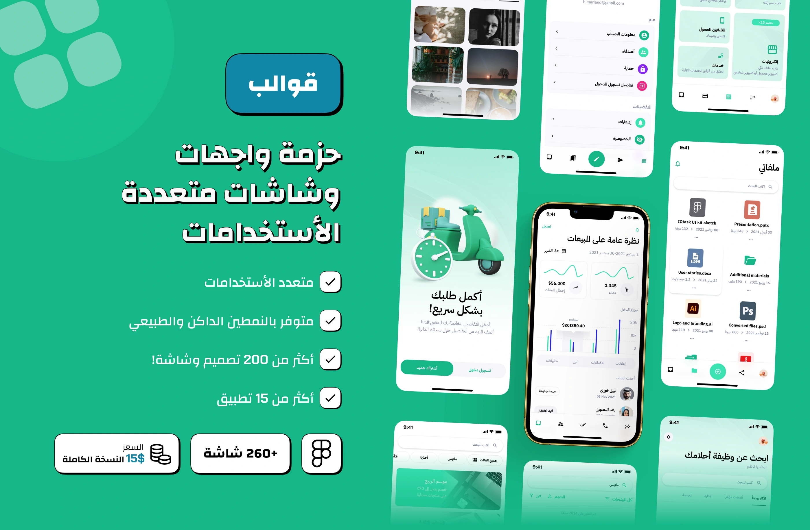 قوالب حزم واجهات وشاشات متعددة الأستخدام لمختلف الأحتياجات والأقسام باللغة العربية تحتوي على أكثر من 15 قسم في أكثر من مجال وتخصص