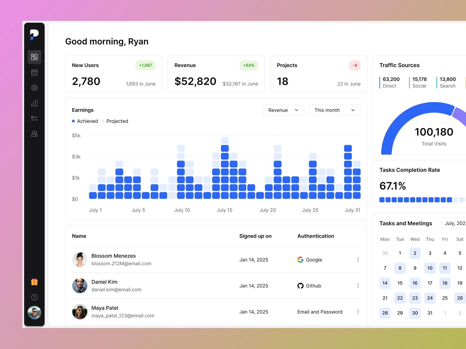 I designed this dashboard with one goal in mind: show the most important business metrics at a glance — clearly, without noise, and in a layout that feels light but powerful. Everything is built around clean typography, balanced spacing, and small visual cues rather than heavy UI elements.